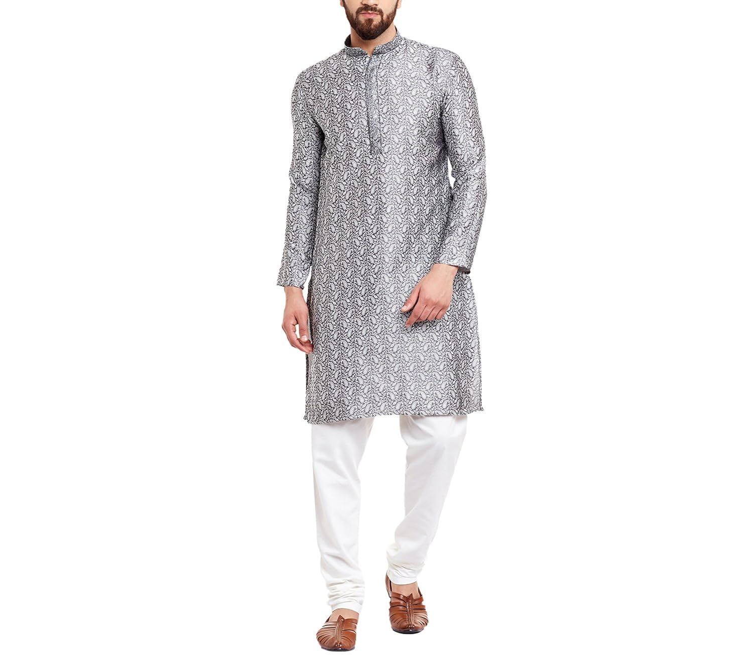 Sojanya (Since 1958) Men's Grey Bronze Jacquard Silk Kurta & Churidaar Pyja...