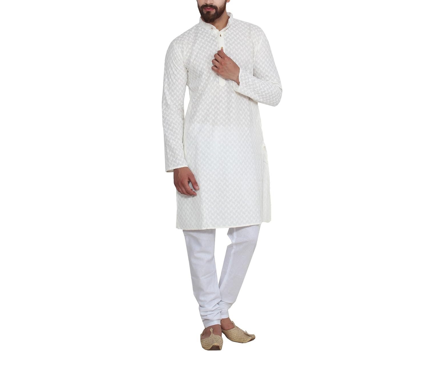 Sojanya (Since 1958) Men's Cream Pure Cotton Chicken Kurta & Churidaar Pyja...