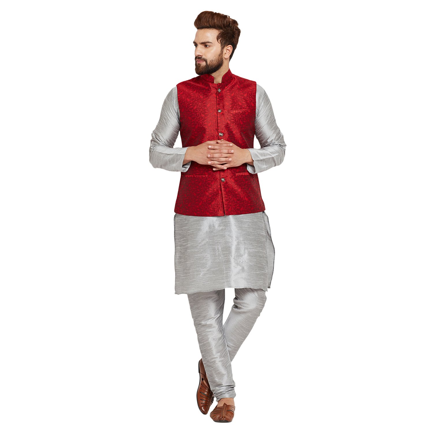Sojanya (Since 1958), Men's Grey and Maroon Silk Blend Kurta Pyjama & Nehru...