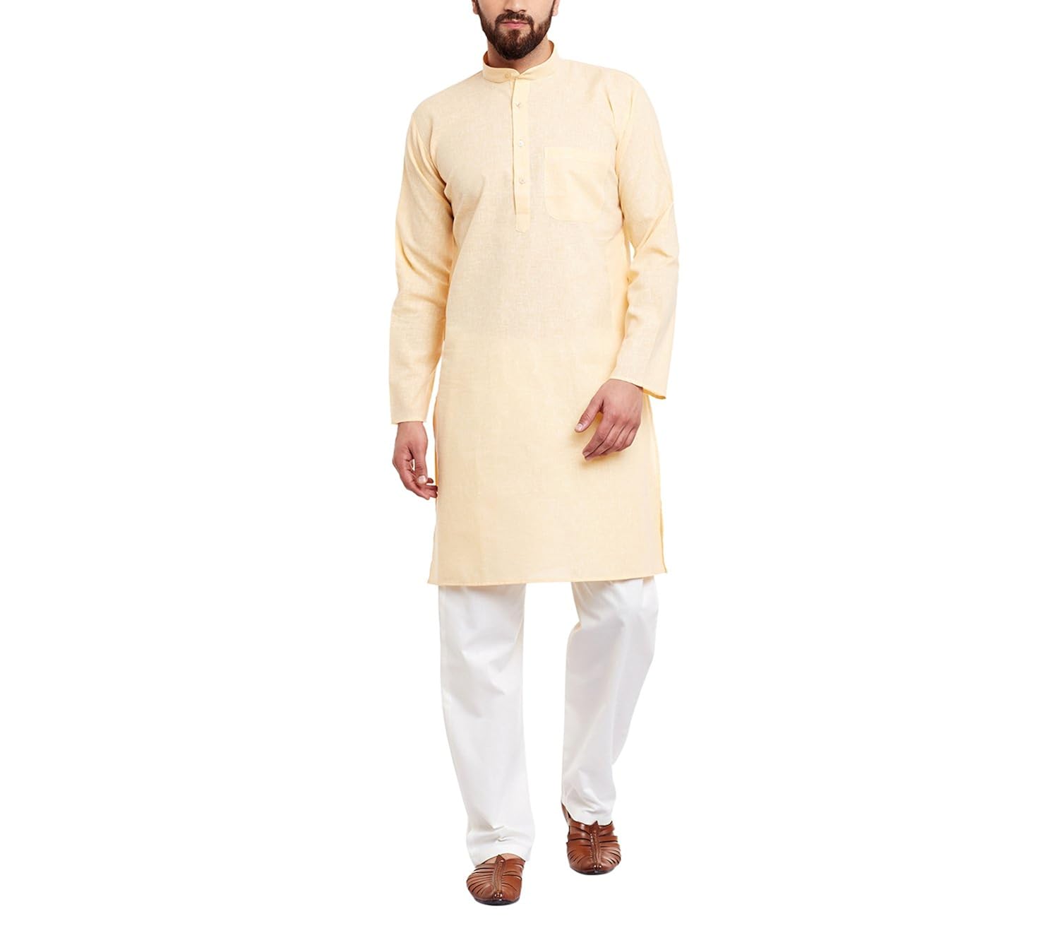 Sojanya (Since 1958) Men's YellowCotton Linen Kurta Pyjama