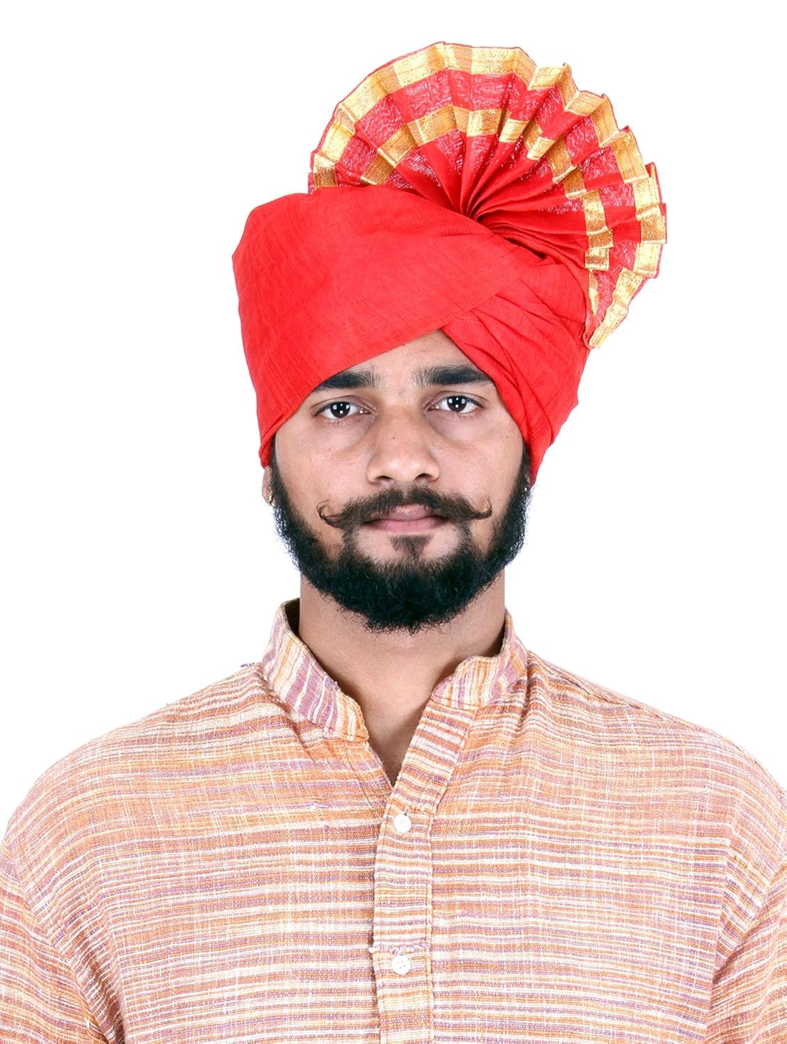 Krypmax Shiny Line on Red Color Traditional Readymade Ethnic Men Safa/Turba...
