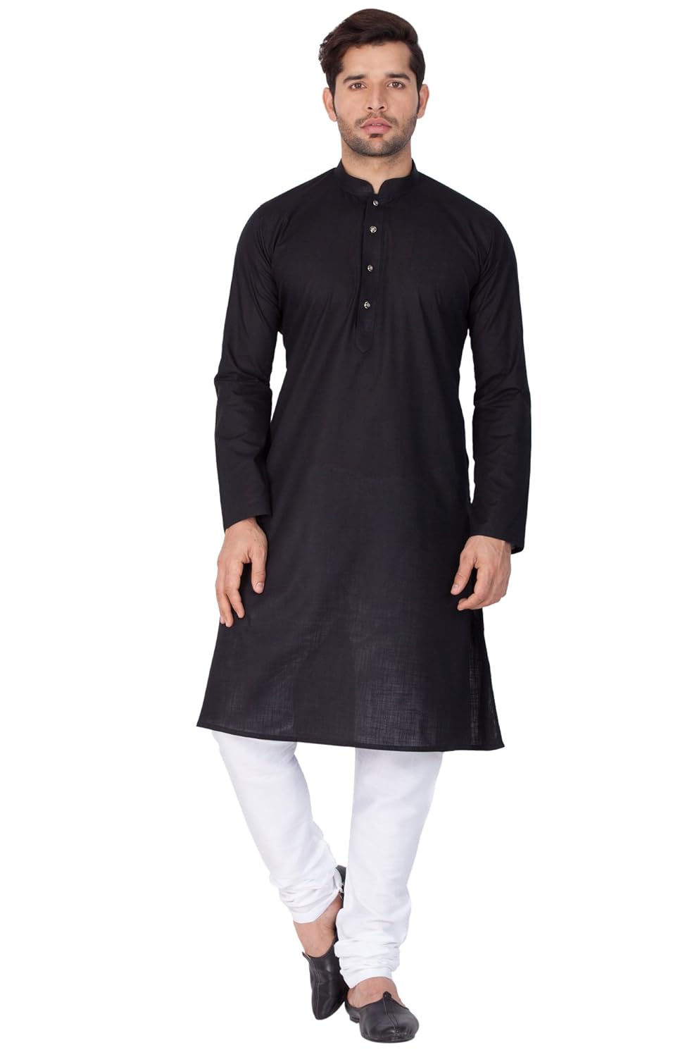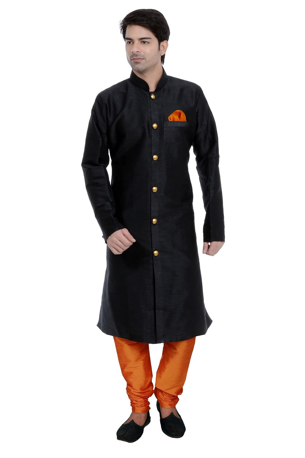 Vastramay Mens Cotton Silk Kurta and Dhoti Pant Set (Black_VASMUK001BLnCDMA...