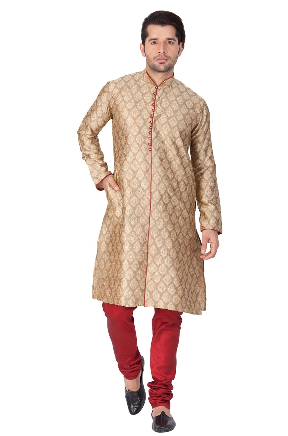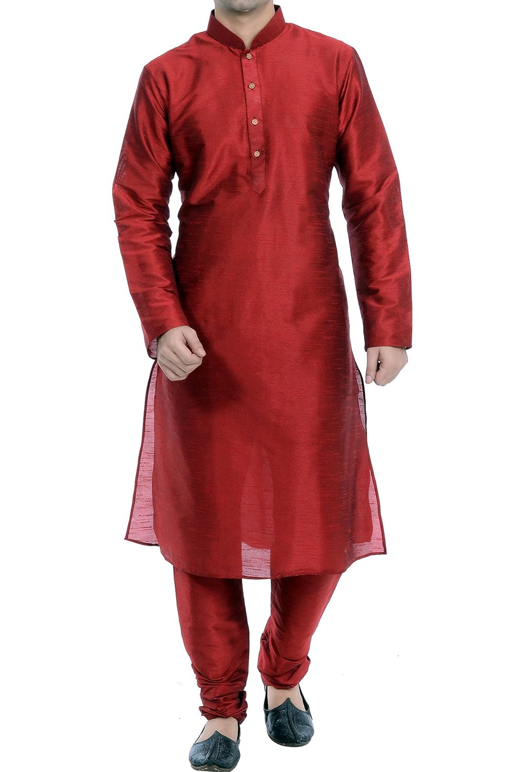 Vastramay Mens Cotton Silk Kurta, Pyjama & Dupatta Set (Maroon_VASMKMA001nP...