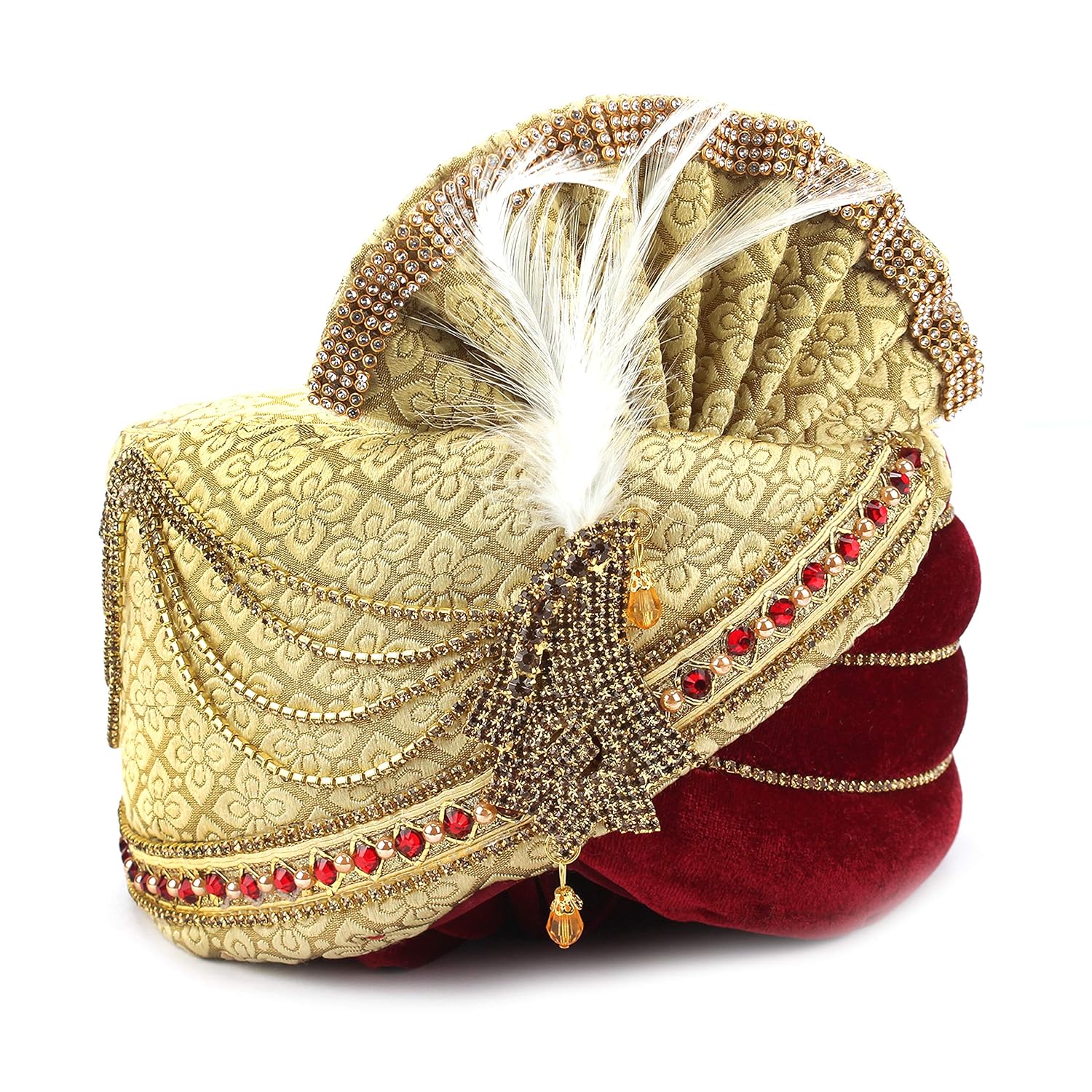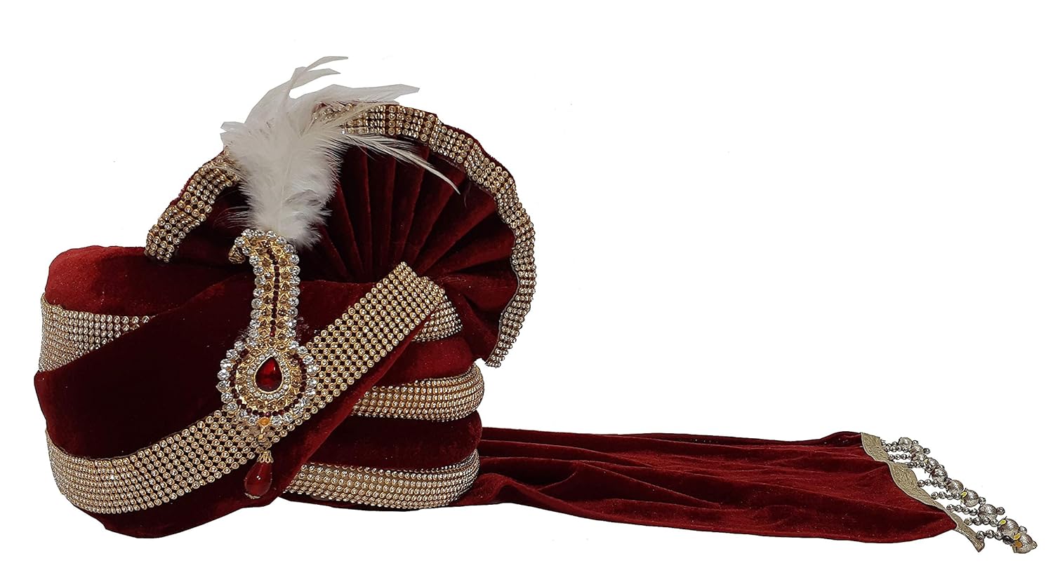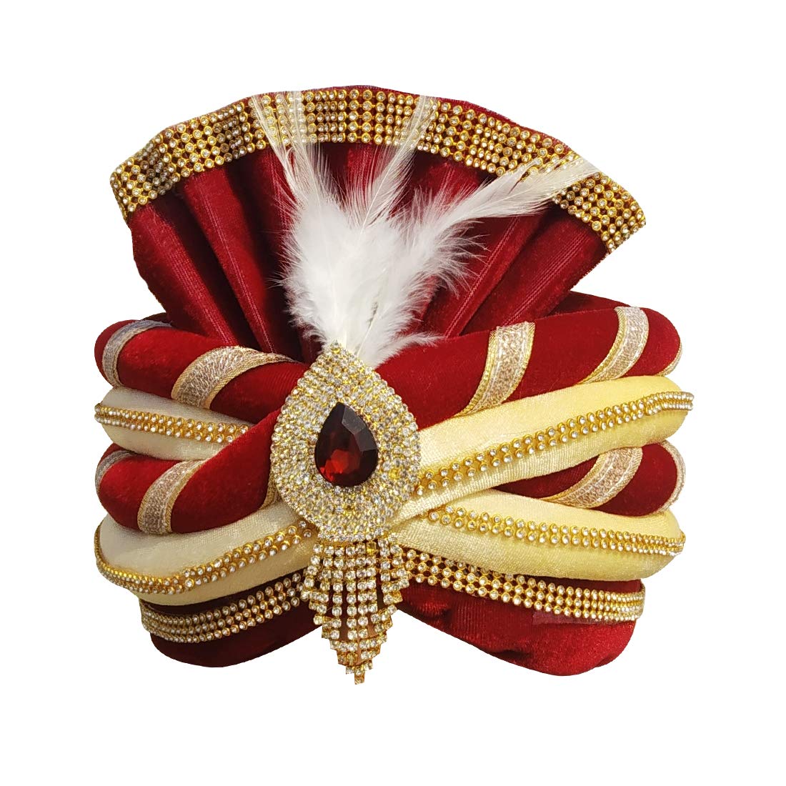 Aman Royal Dulha Collection Men's Velvet Safa/Turban/Pagdi (Maroon, Free Si...