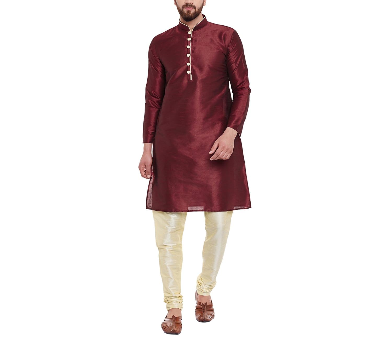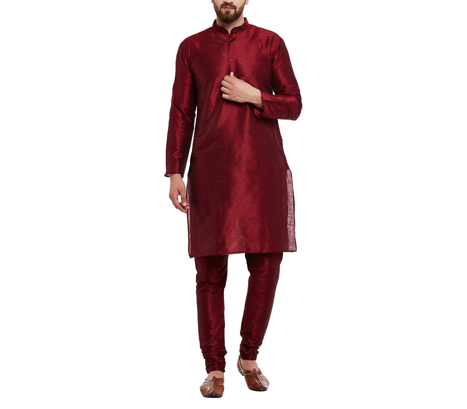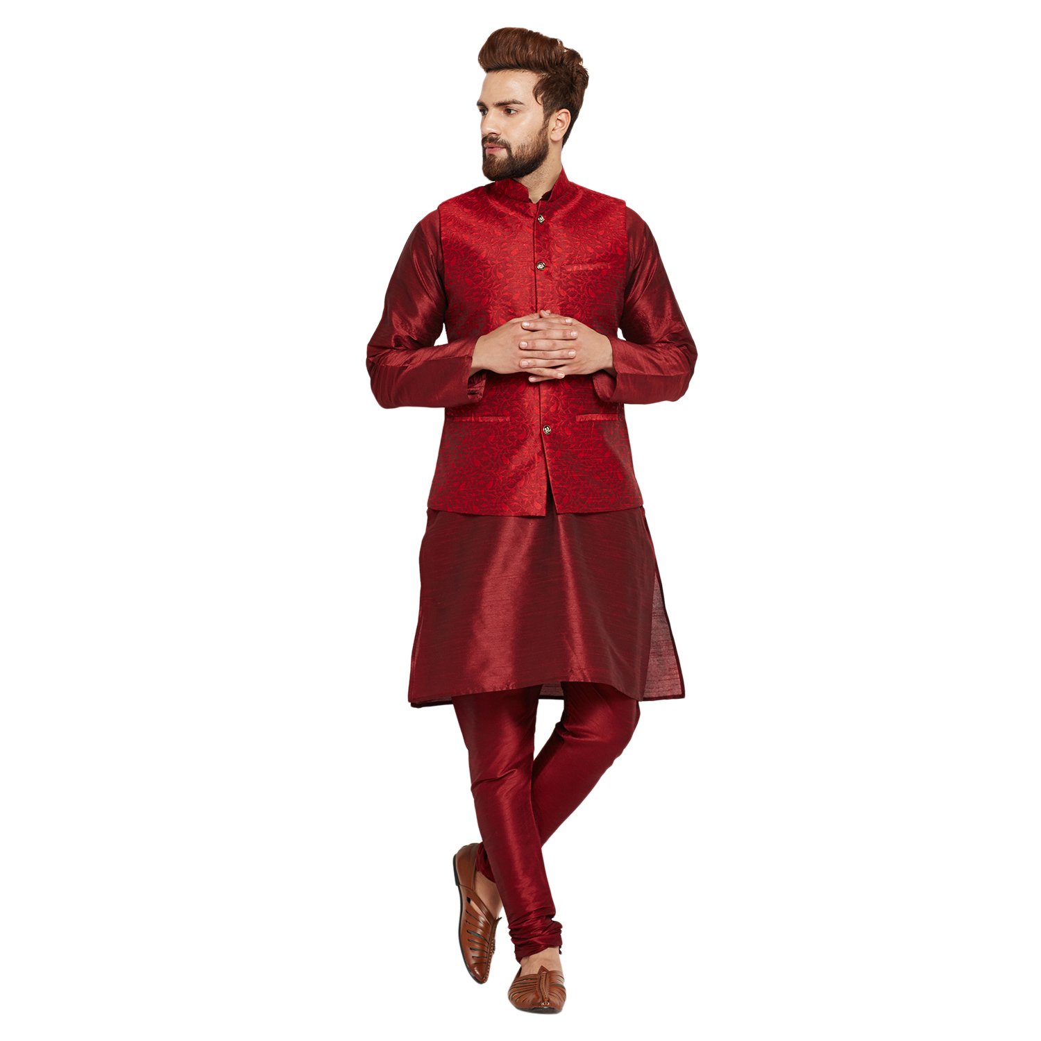 Sojanya (Since 1958), Men's Maroon and Maroon Silk Blend Kurta Pyjama & Neh...