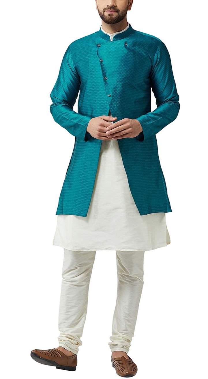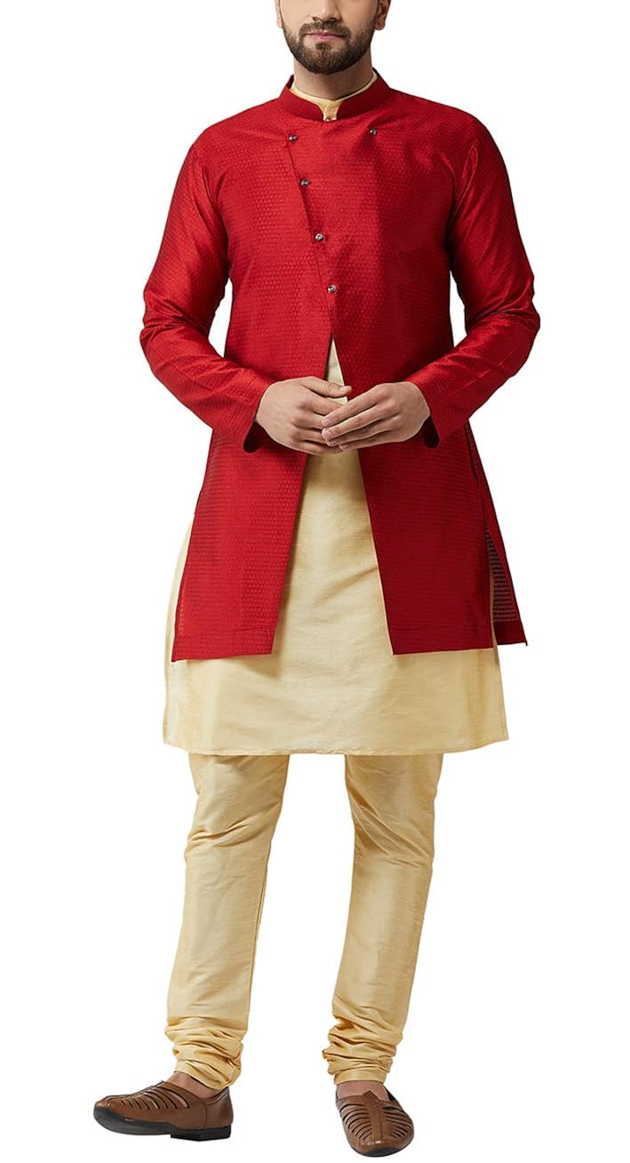 Sojanya (Since 1958), Men's Silk Blend Kurta Churidaar Pyjama & Jacket COMB...