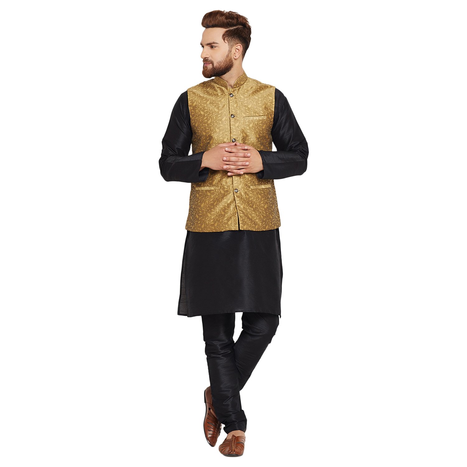 Sojanya (Since 1958), Men's Black and Gold Silk Blend Kurta Pyjama & Nehru ...