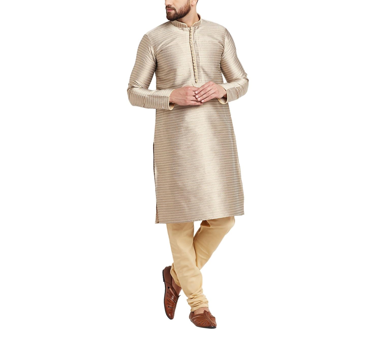 Sojanya (Since 1958) Men's Men's Copper Jacquard Silk Kurta & Churidaar Pyj...