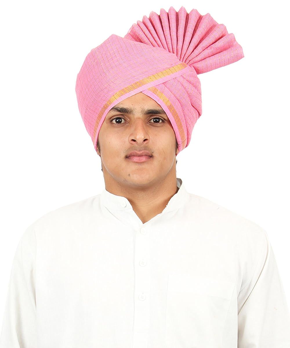 Aman Royal Dulha Collection Men's Printed Fabric Safa/Turban/Pagdi (Pink, F...