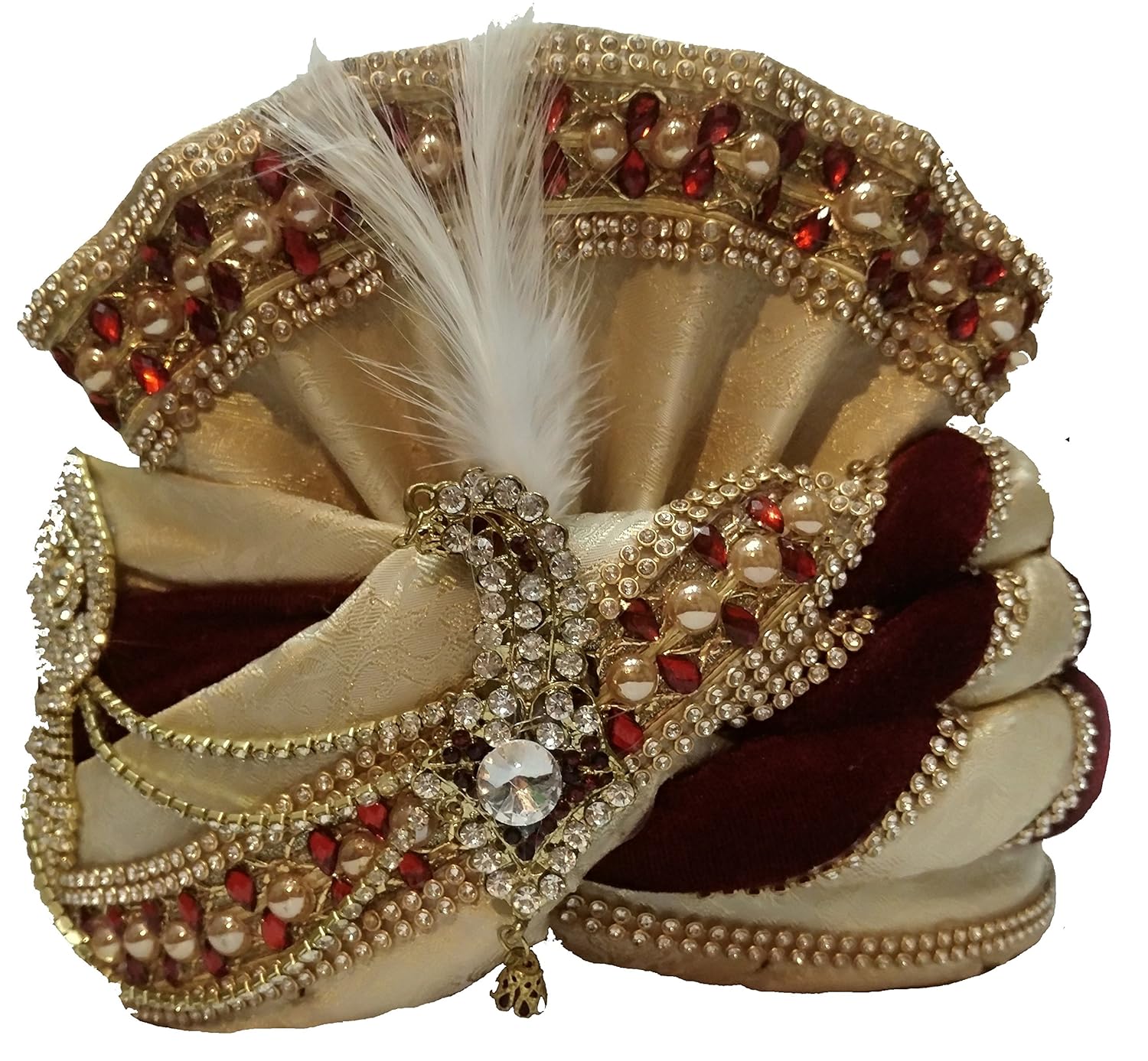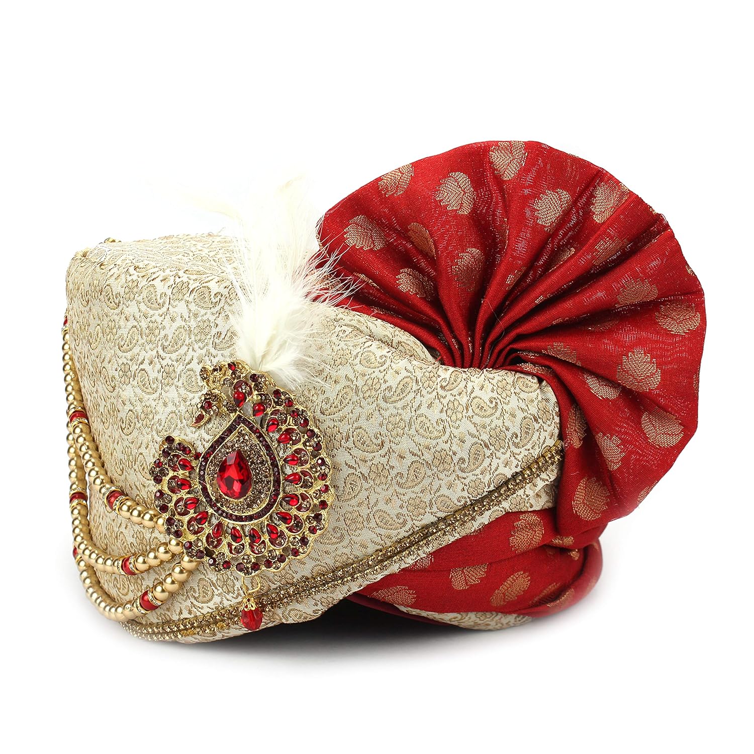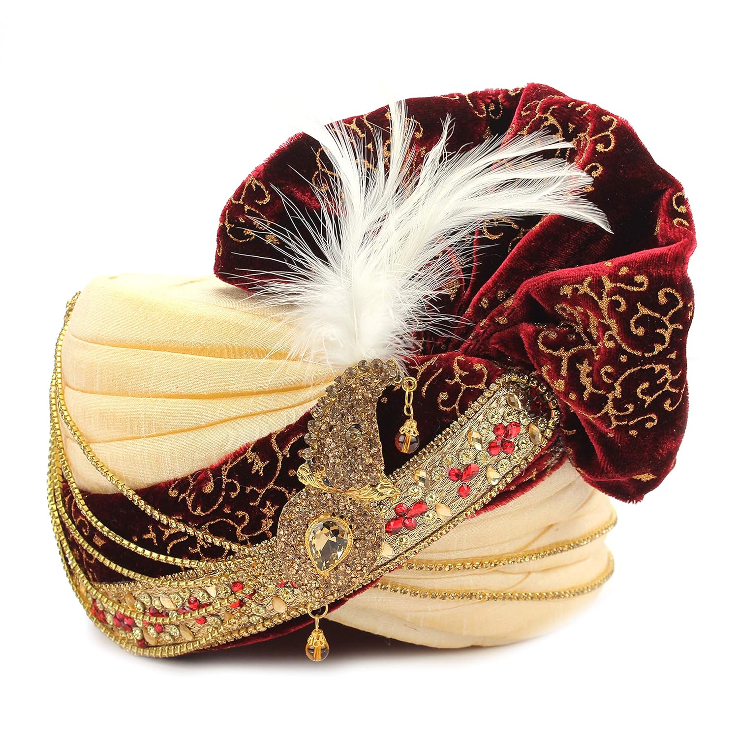 Aman Royal Dulha Collection Men's Ethnic Velvet Safa/Turban/Pagdi (Cream, F...