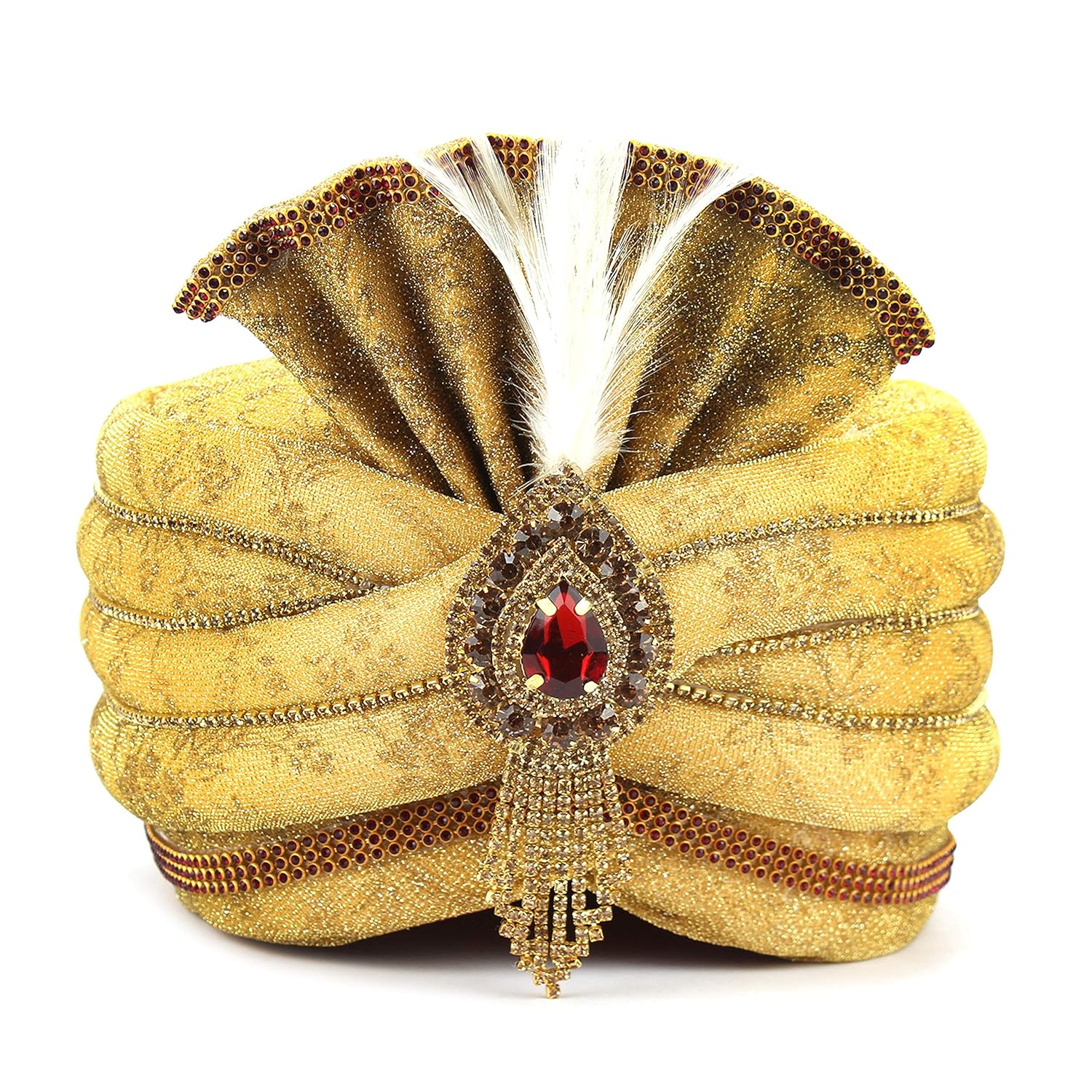 Aman Royal Dulha Collection Men's Ethnic Fabric Safa/Turban/Pagdi (Shiny Go...