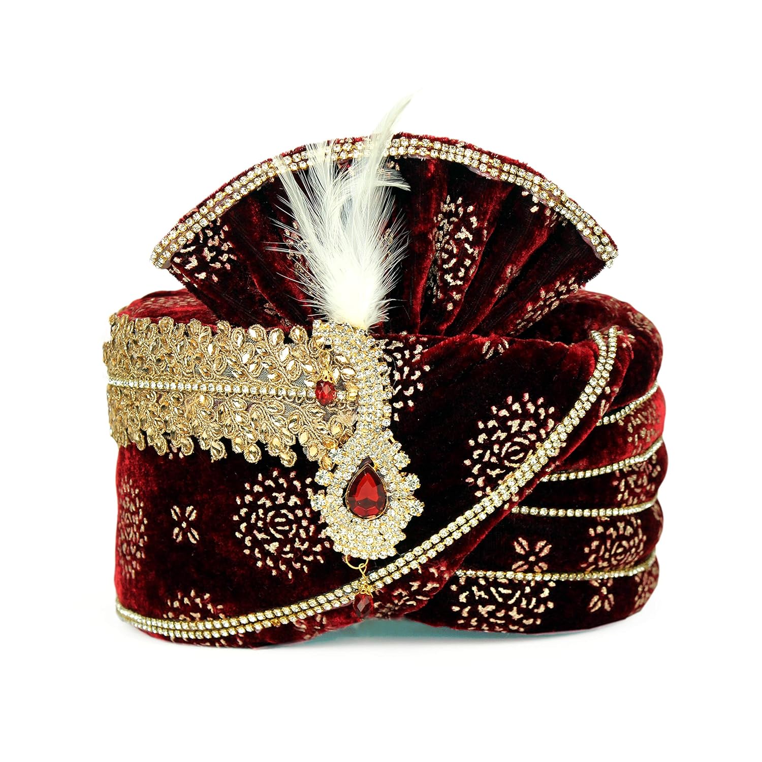 safa/Turban/pagdi for Men Maroon Velvet with Golden Print dulha Marriage/pa...