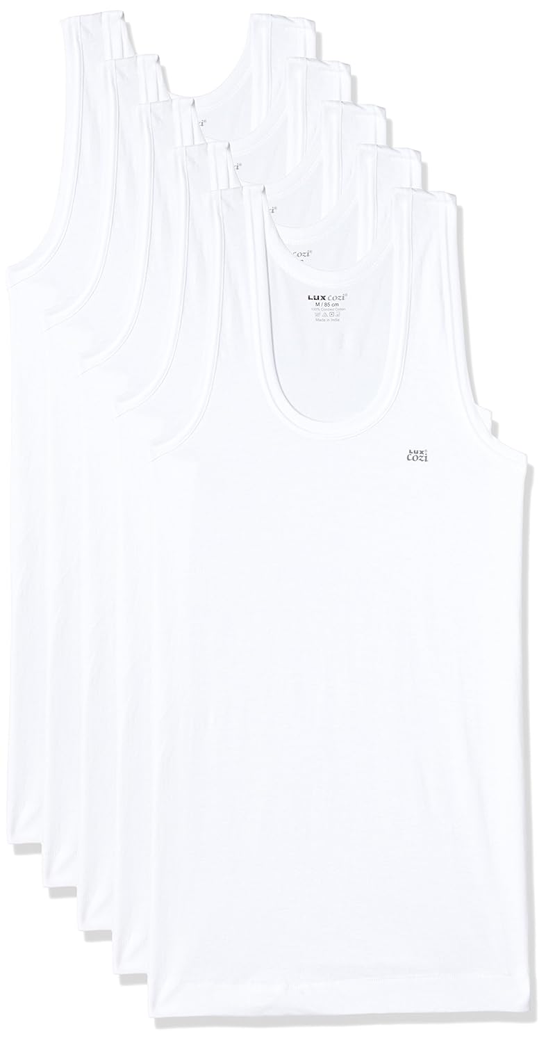 Lux Cozi Men's 100% Cotton White Vests (Pack of 5)