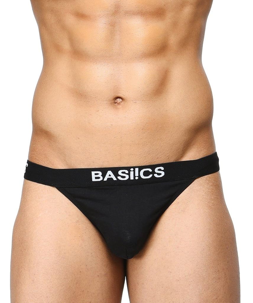 BASIICS by La Intimo Men's Black Cotton Spandex Prime Thong