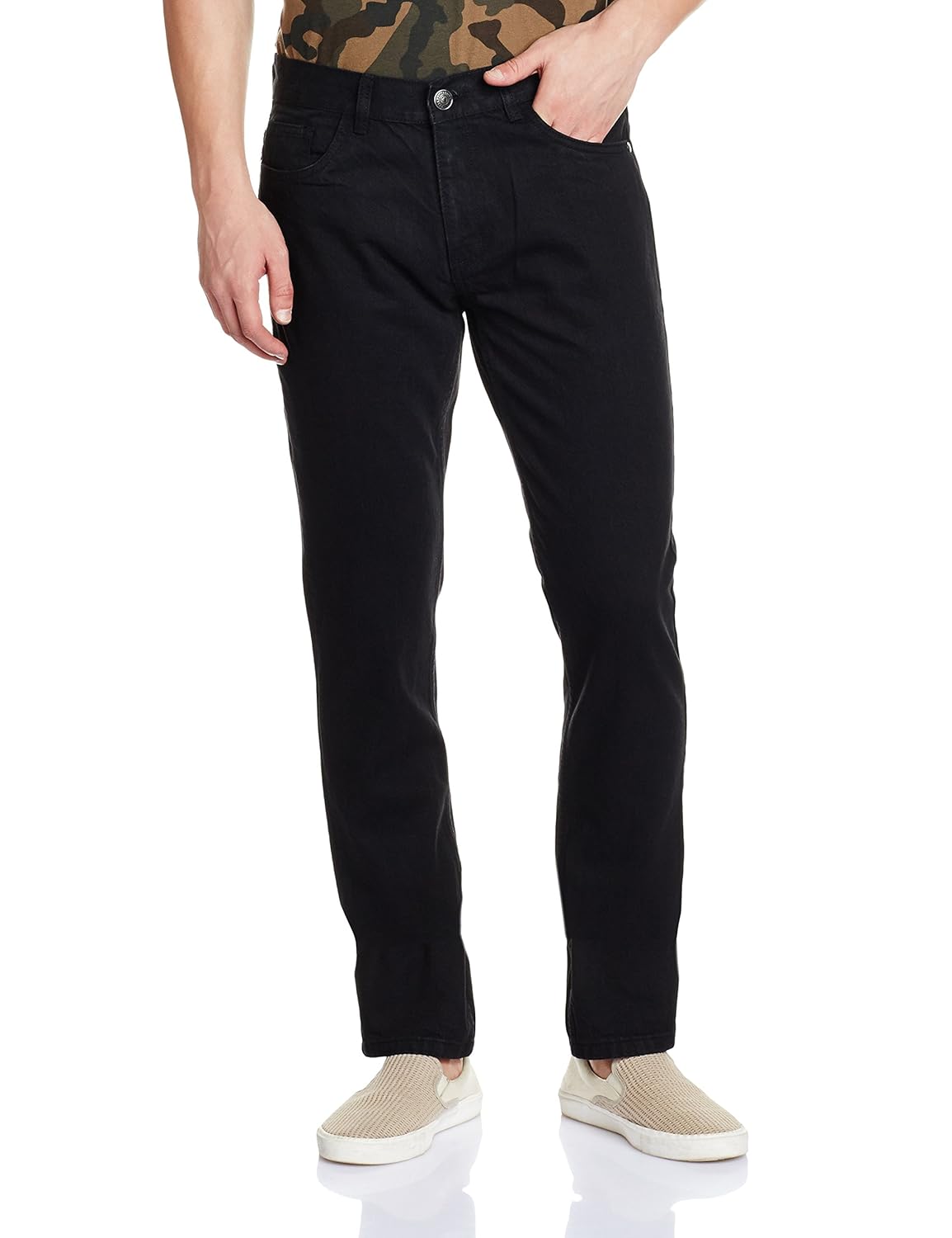 Urbano Fashion Men's Black Slim Fit Stretch Zippered Jogger Jeans