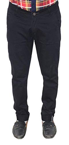 Aaron's Rod Men's Cotton Lycra Regular Fit Black Twill Cotton Trouser Size ...