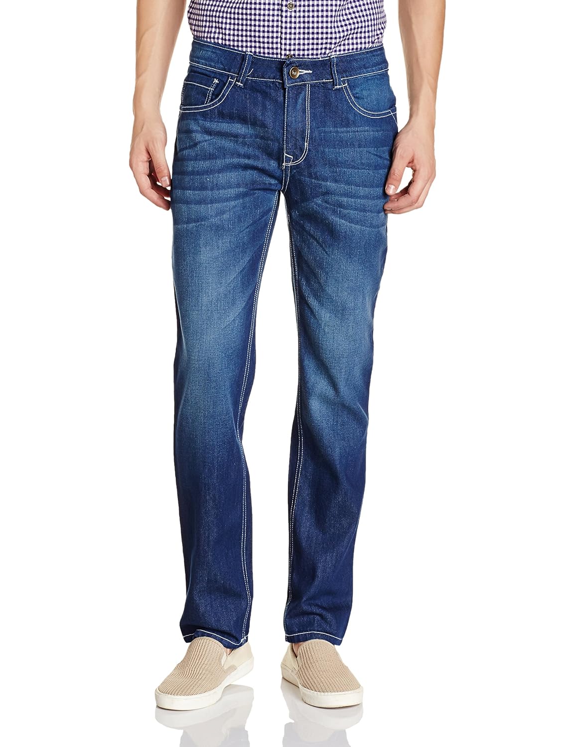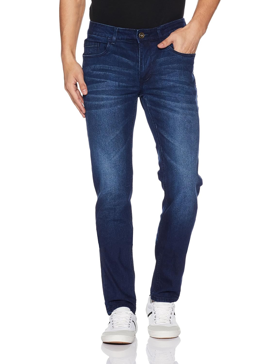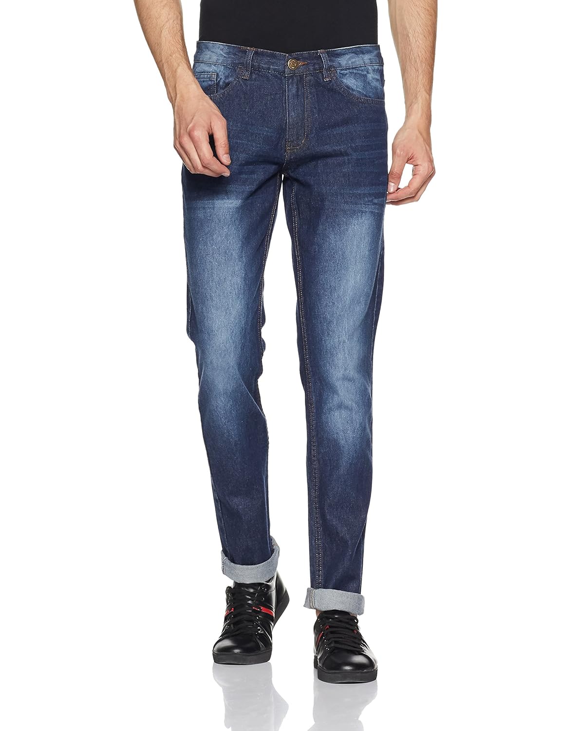 FunTree Men's Regular Stretchable Dark Blue Slim Fit Jeans