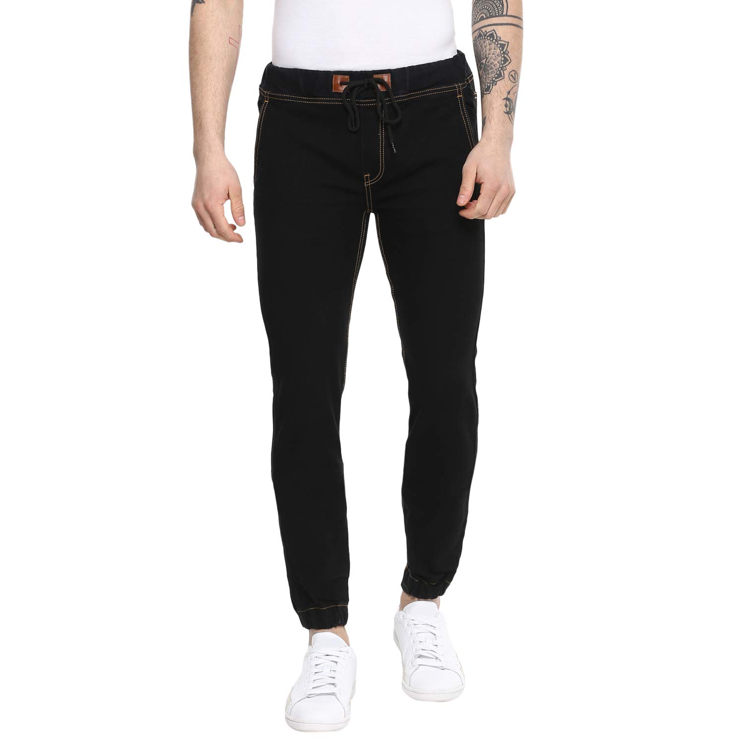 Urbano Fashion Men's Black Jogger Jeans Slim Fit Stretch