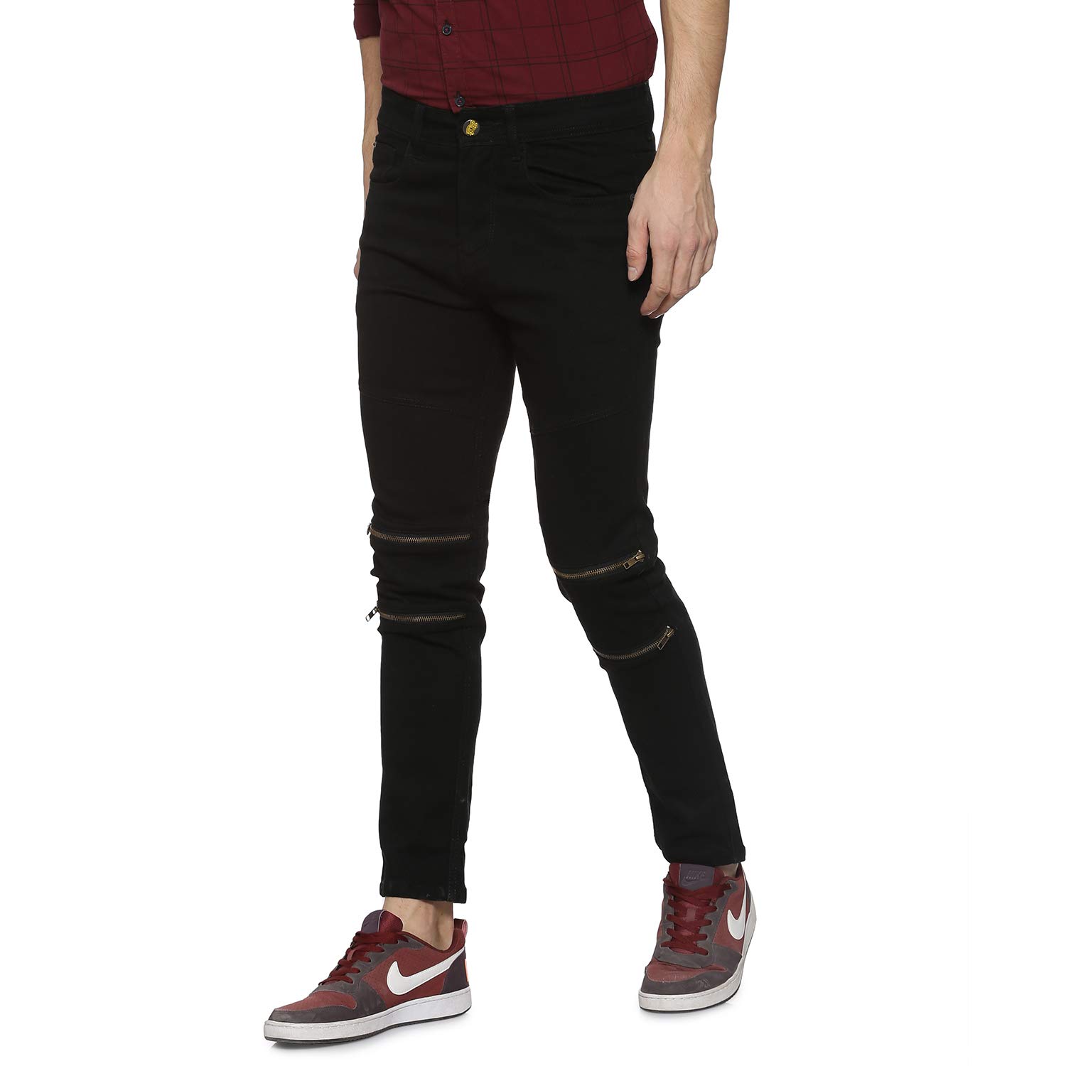 Campus Sutra Men Front 2 Zip Denim Jeans Black