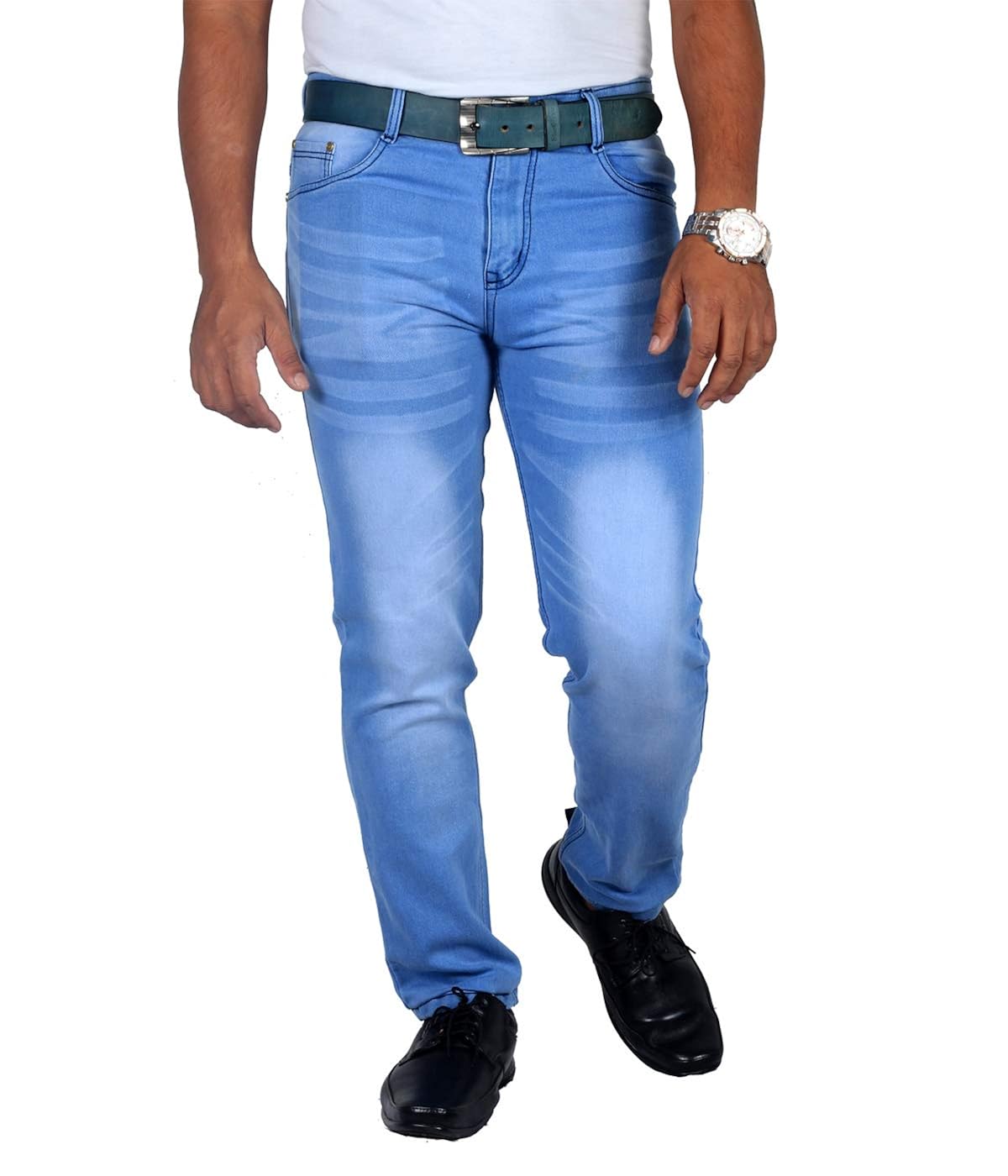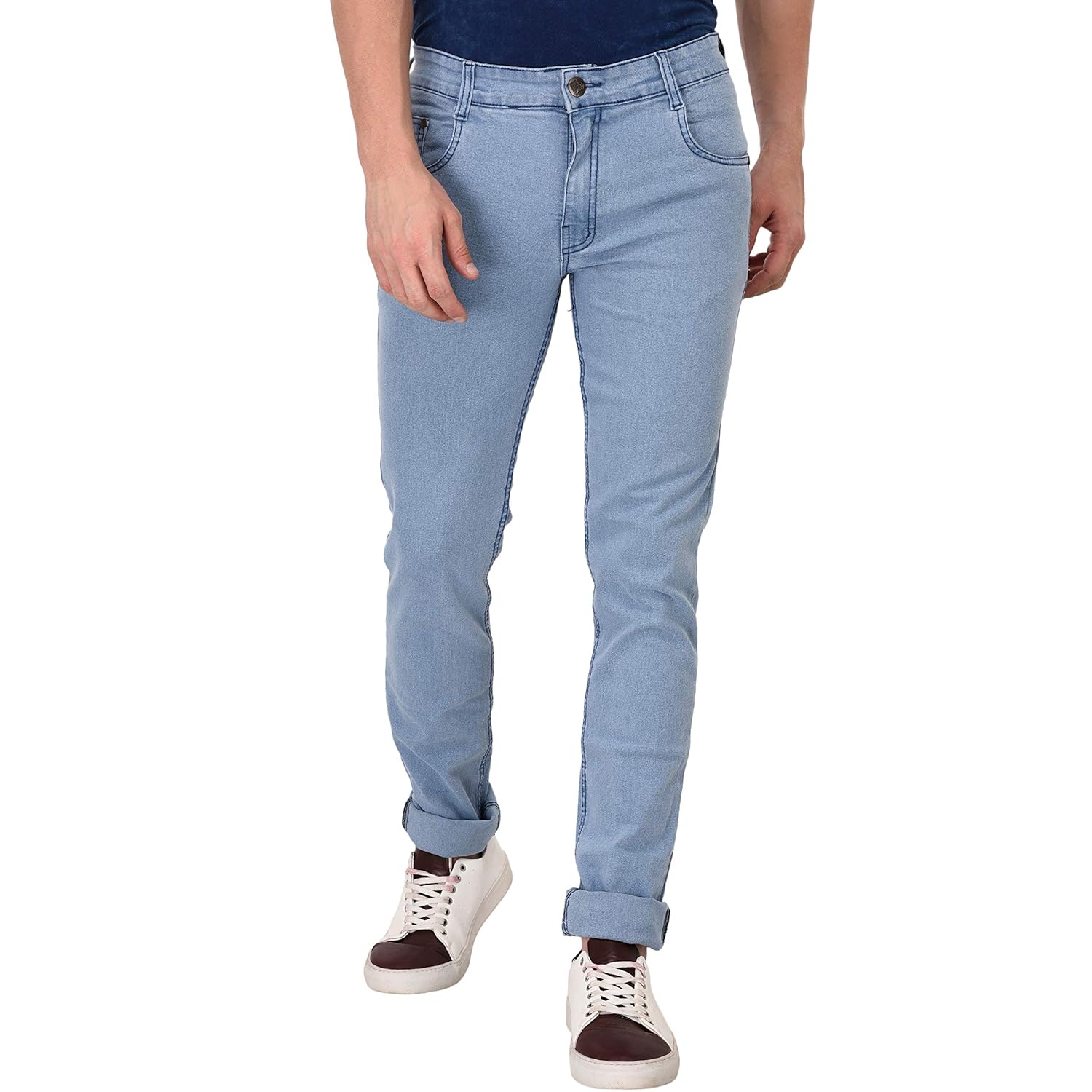 L,Zard Men's Stretchable Fabric Light Blue Slim Fit Jeans