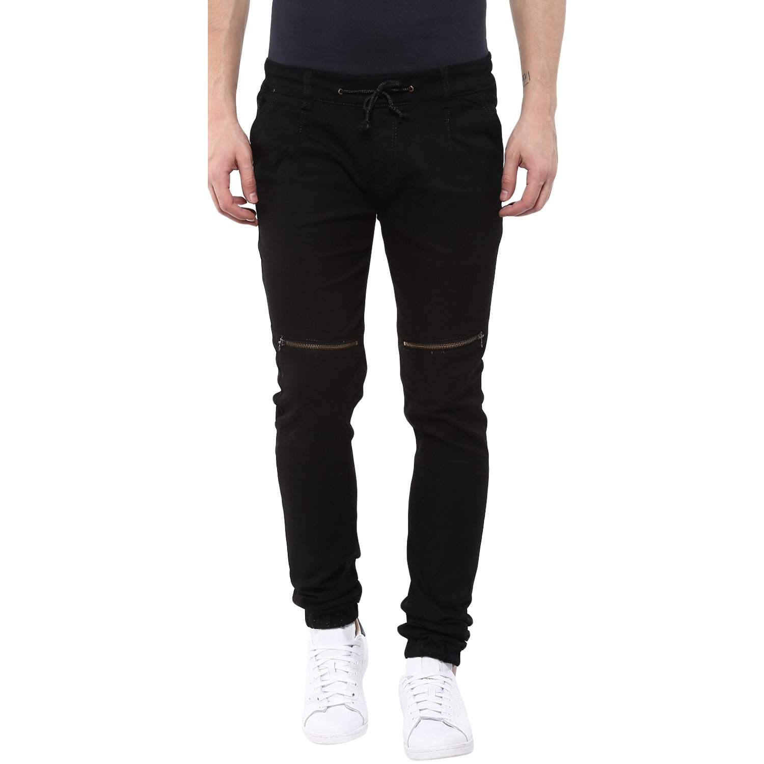 Urbano Fashion Men's Black Slim Fit Stretch Zippered Jogger Jeans