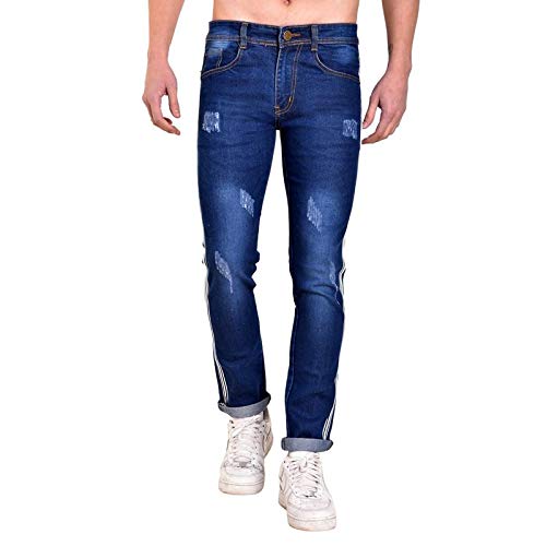 Mark Tailor Men's Horizontal White Strip Patched Tapered Denim Jeans