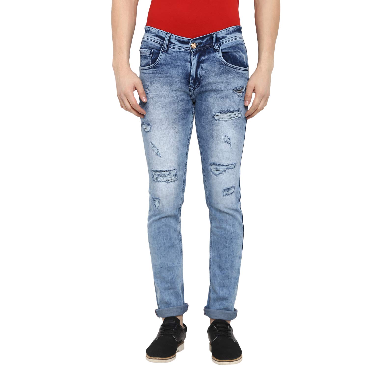 Routeen Men's Light Bata Blue 100% Cotton Spandex Denim Jeans