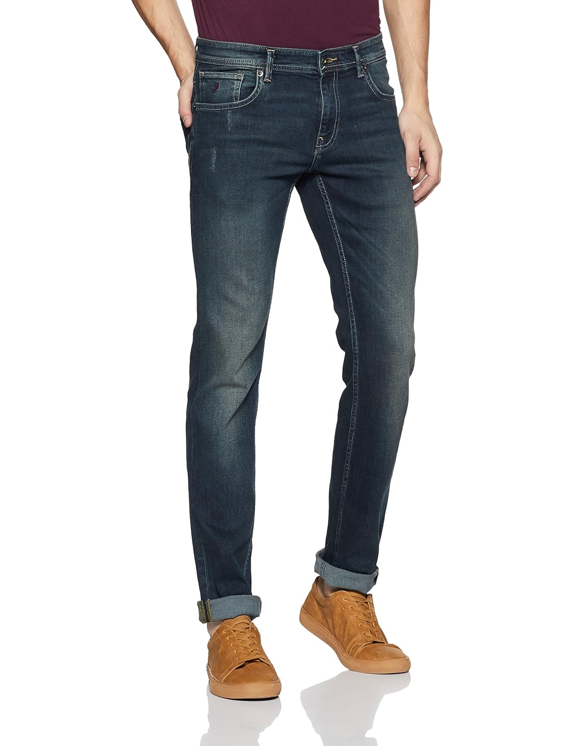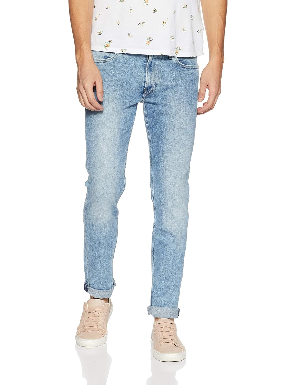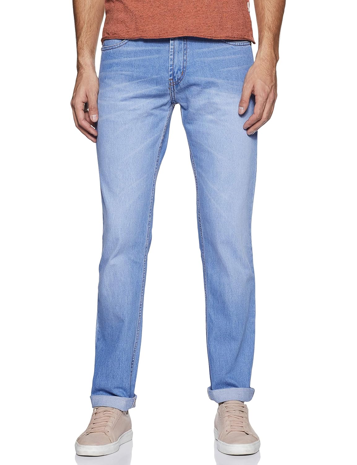 L,Zard Men's Stretchable Fabric Light Blue Slim Fit Jeans