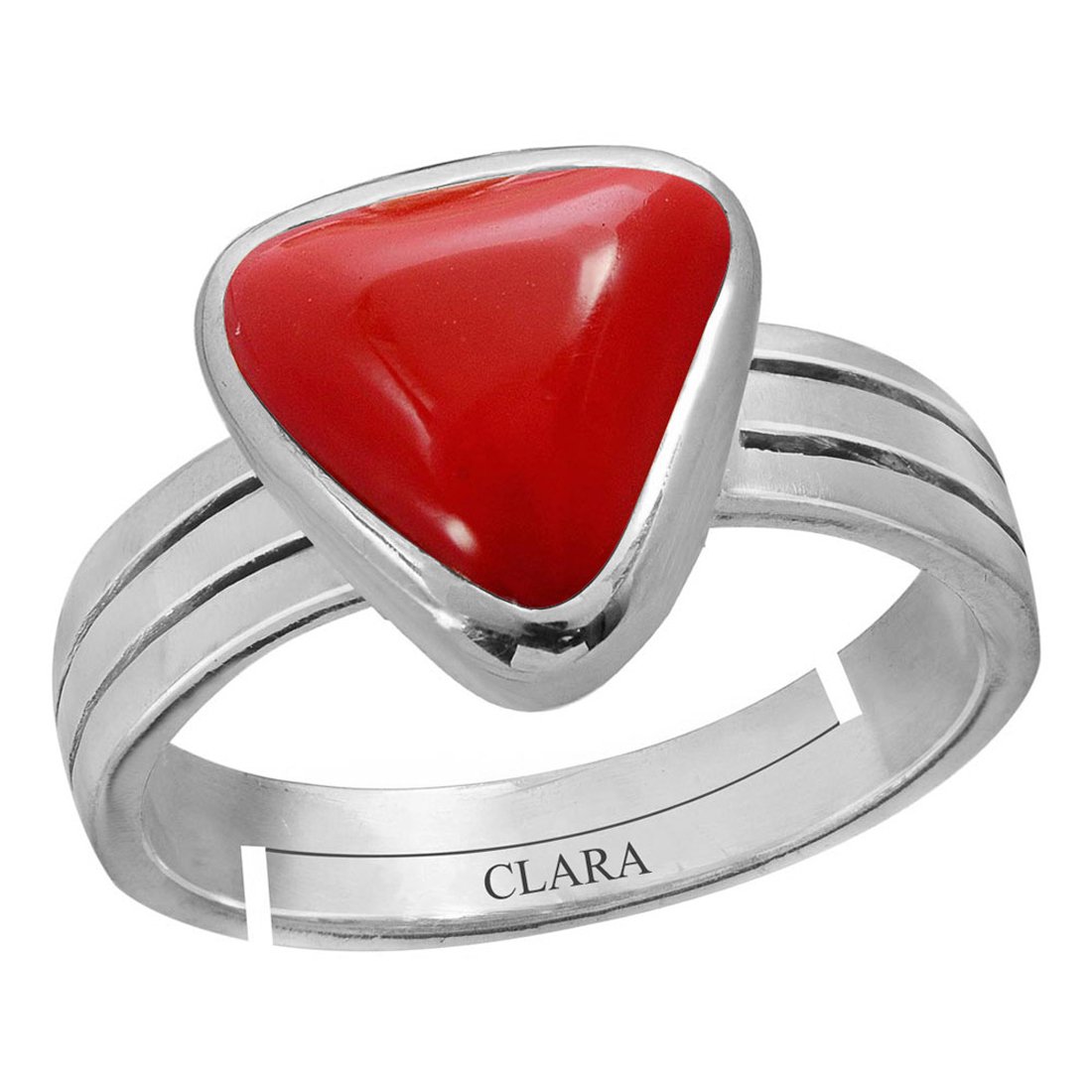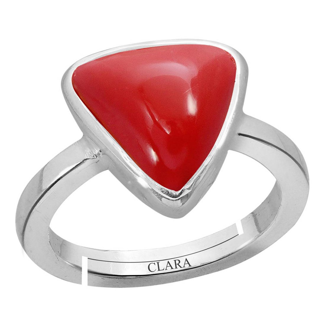 Clara Trikona Coral Moonga 3cts or 3.25ratti Stone 92.5 Sterling Silver Adj...
