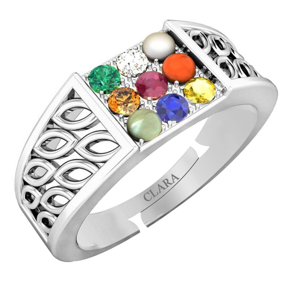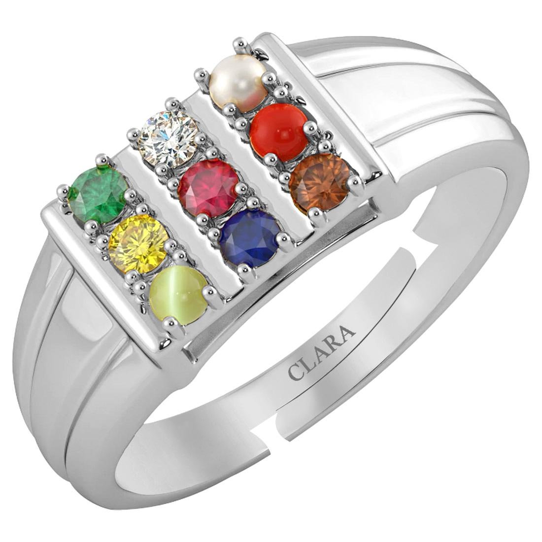 Clara 92.5 Sterling Silver Natural Certified Navaratna Stone 9 gems Adjusta...