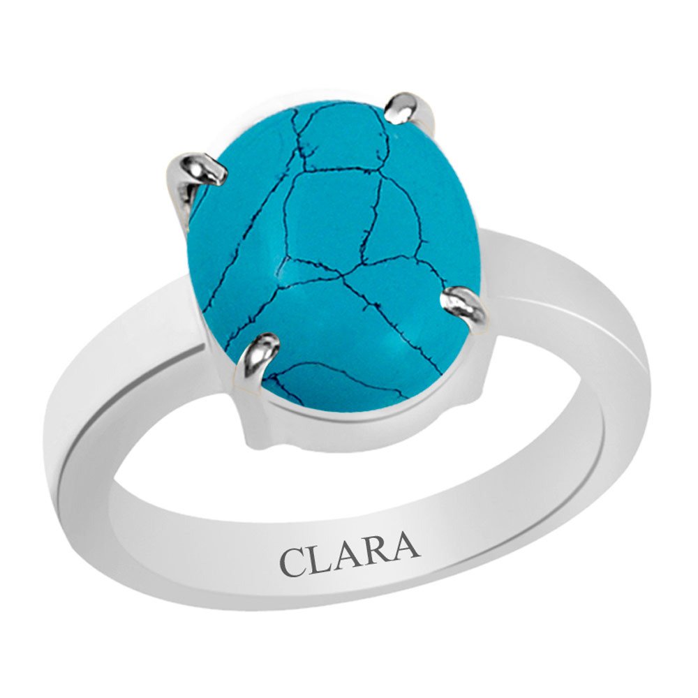 Clara Certified Turquoise Line (Firoza) 9.3cts or 10.25ratti 4 Prongs Silve...