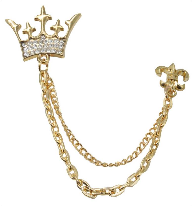 Sullery King Crown Metal Brooch Pin Men Women Chain Crystal Rhinestone Tass...
