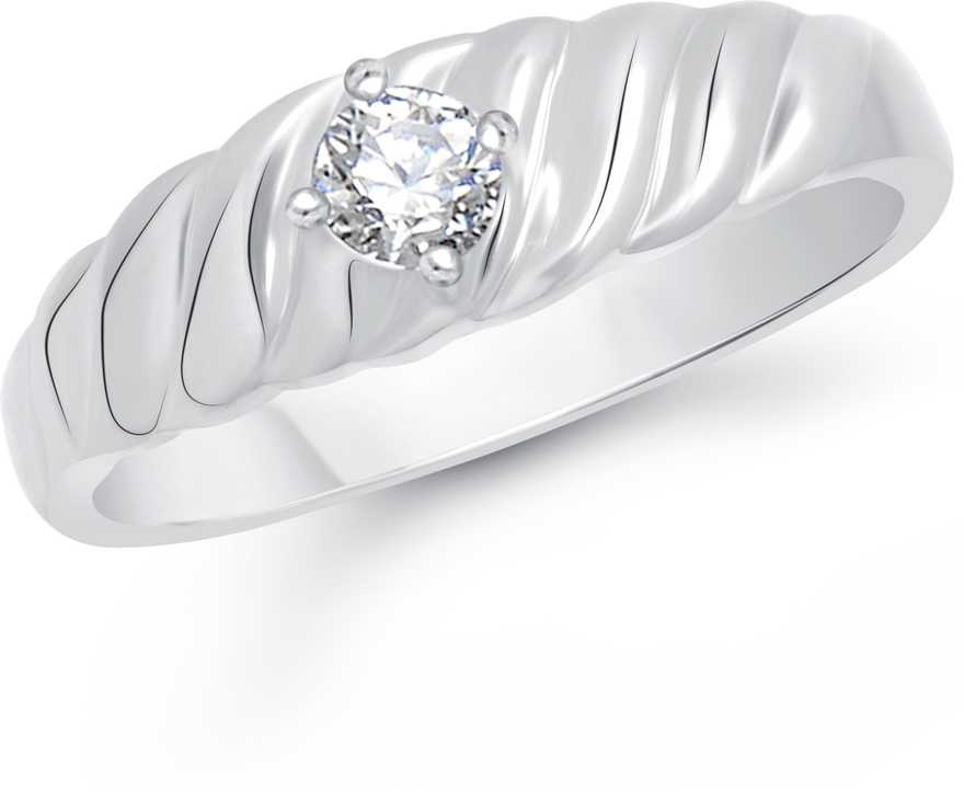 Single Stone Alloy Cubic Zirconia Rhodium Plated Ring