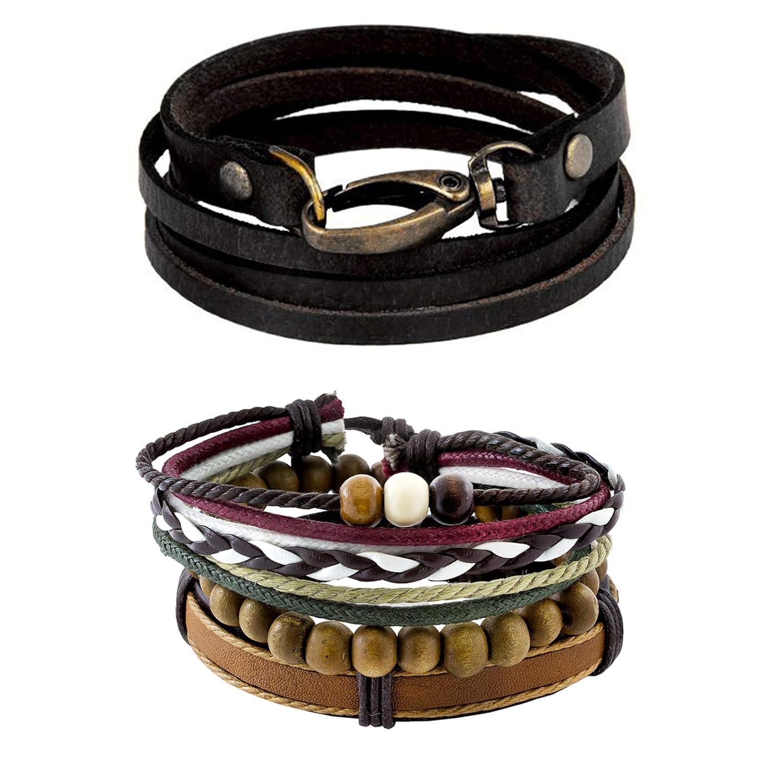 ZIVOM Leather Earthen Rope Tibetian Dual Stackable Multistrand Wrist Band B...