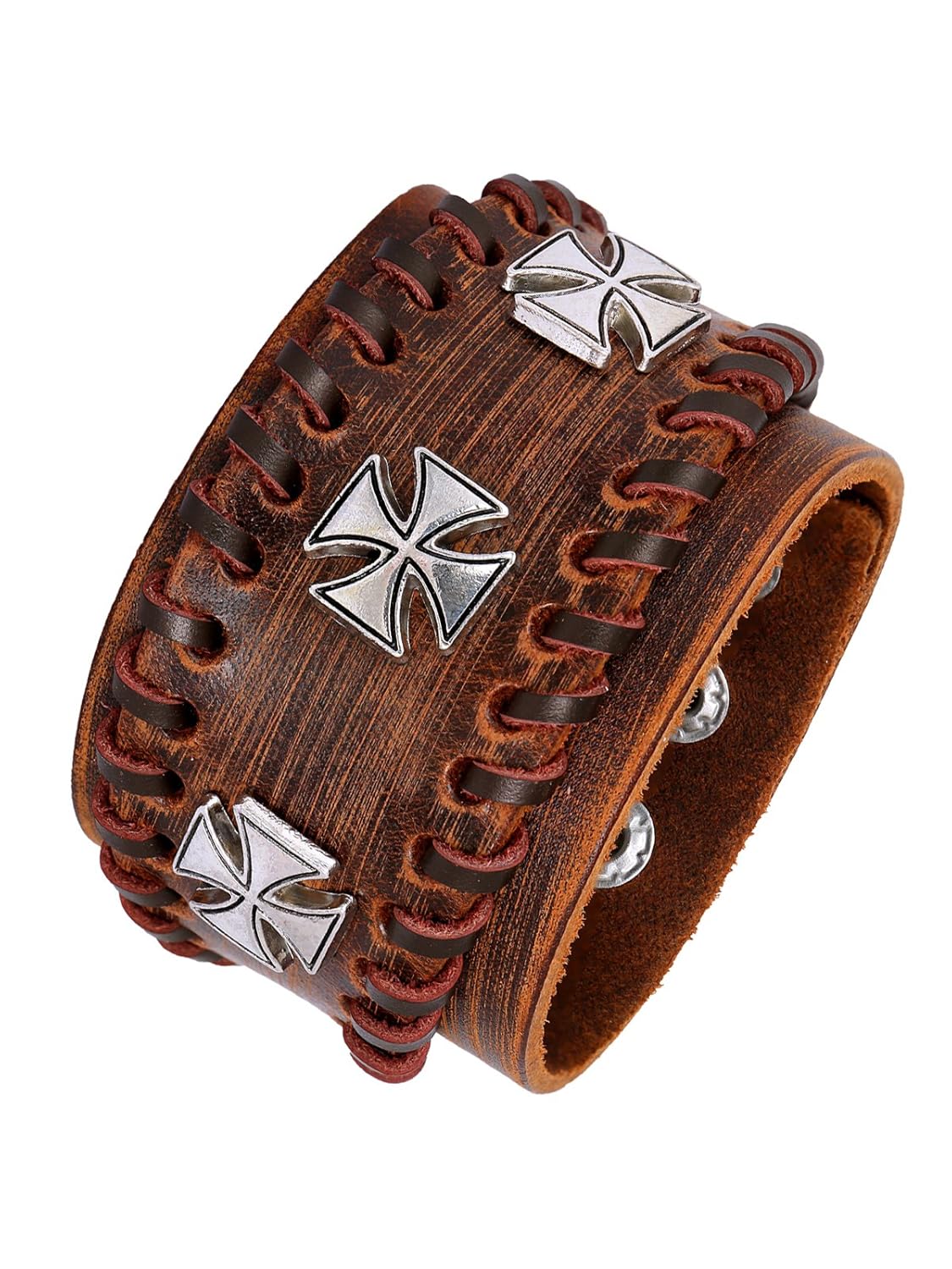 ZIVOM 3D Cross Tan Brown Handcrafted Leather Wrist Band Strap Biker Bracele...