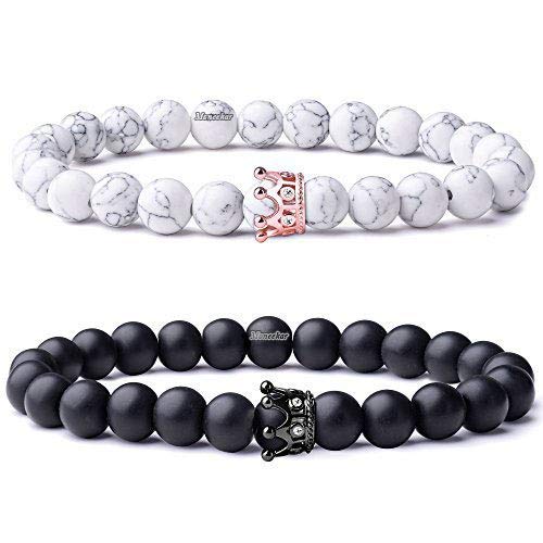 Moneekar Jewels Black Matte Agate and White Howlite Adjustable Bracelet for...