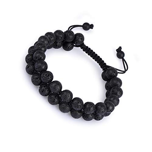Moneekar Jewels Mens Leather Buddha Head Matte Onyx Stone Bracelet