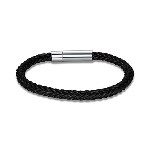 Moneekar Jewels Black Braided Leather Bracelet with Stainless Steel Magneti...