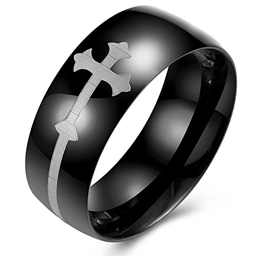 Yellow Chimes Cross Divine Steel by Yellow Chimes Ring for Men (Black)(YCSS...