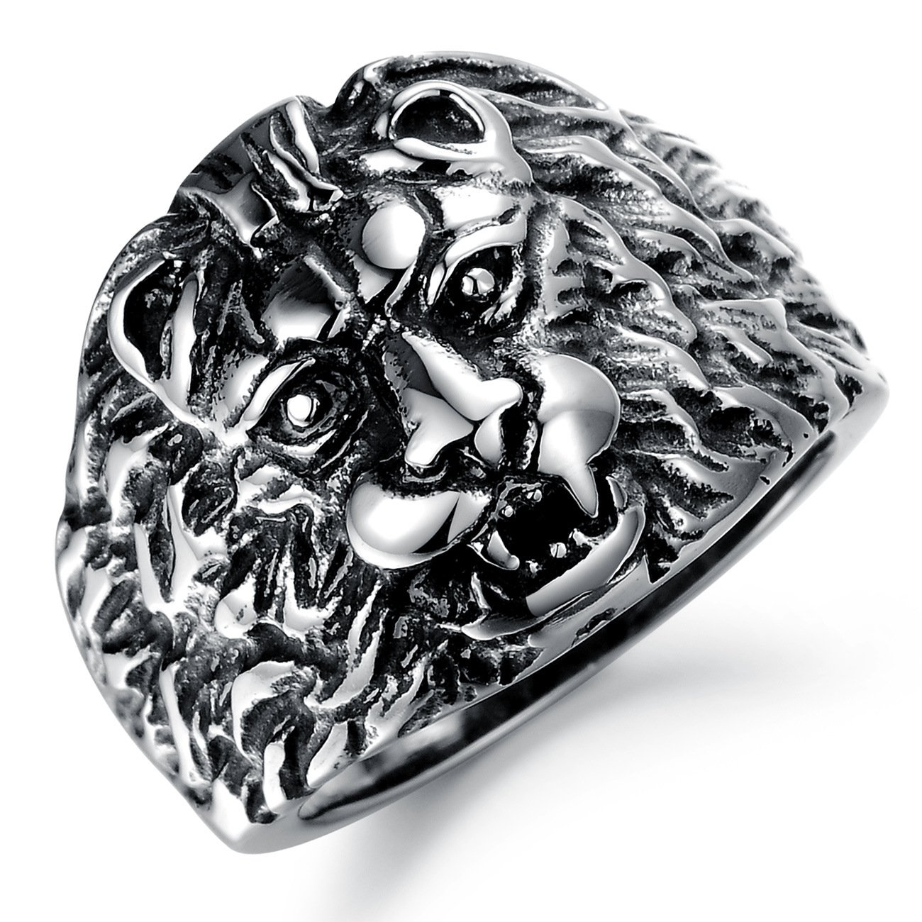 YELLOW CHIMES Lion Tough Stainless steel Bikers Ring for Boys and Men