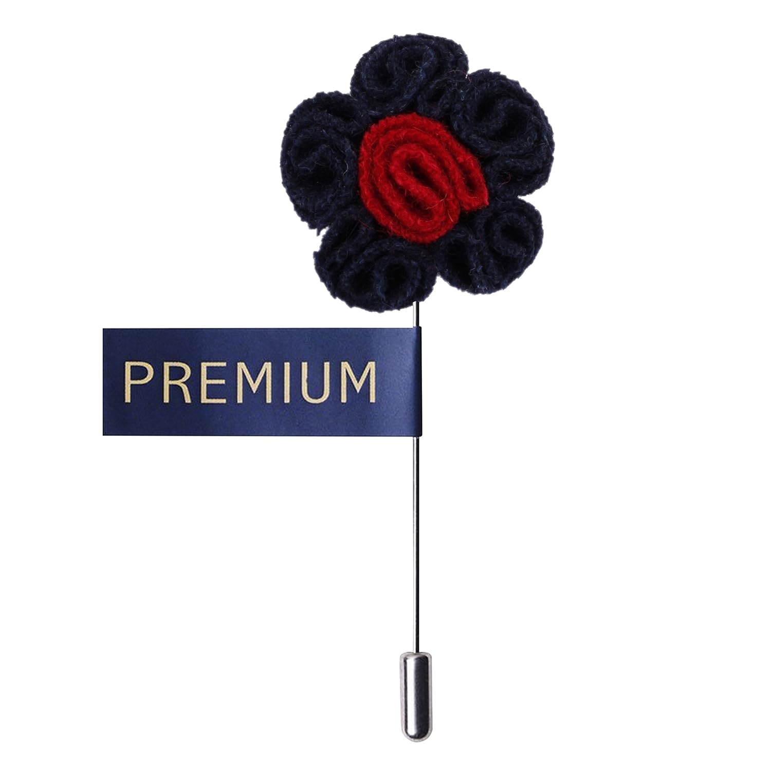 Peluche Blossoming Style - Navy Blue & Red Colored Velvet Brooch/Lapel Pin ...