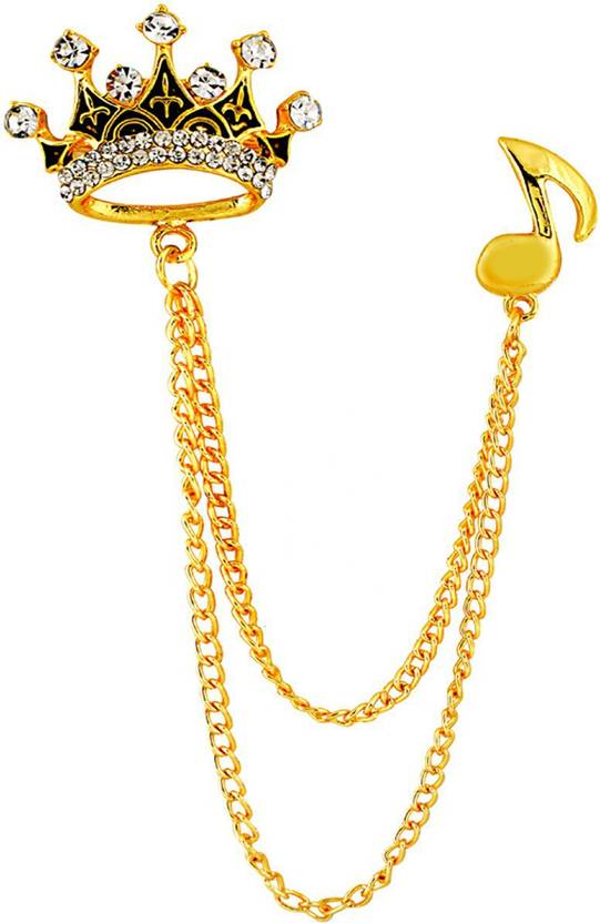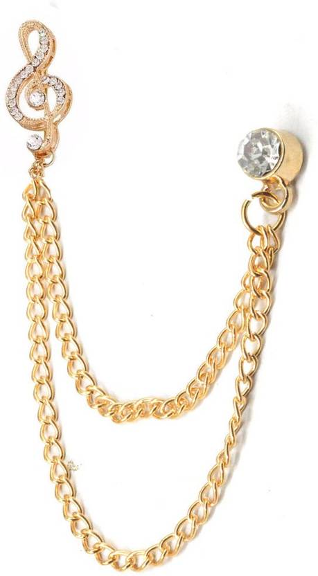 Sullery Vintage Gold Crystal Music Note Chain Lapel Pin Tie Chain Lapel Pin...