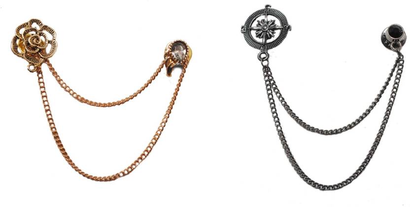 BnB Golden Flower And Gunmetal Double Chain Brooch (Gold, Black)