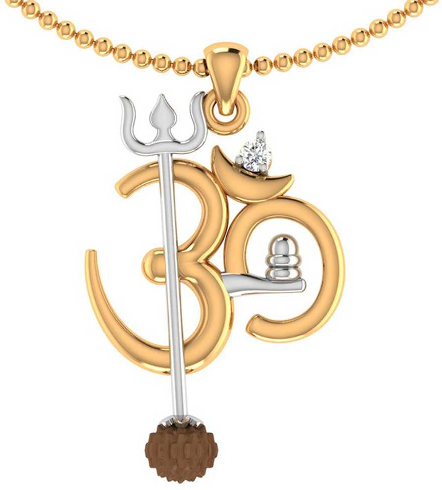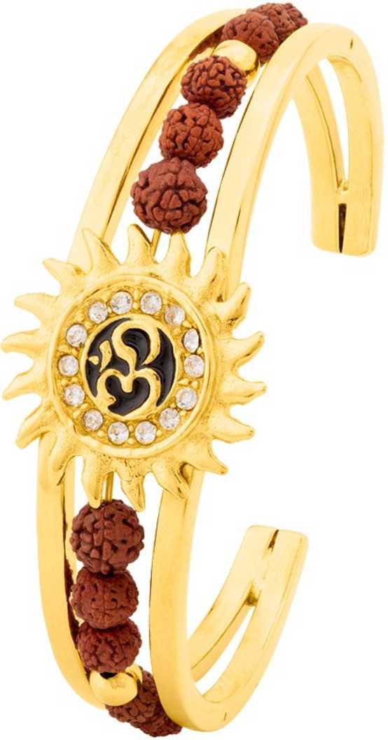 OM Design Rudraksha Studded Pendant With Chain For Men Gold-plated Cubic Zi...