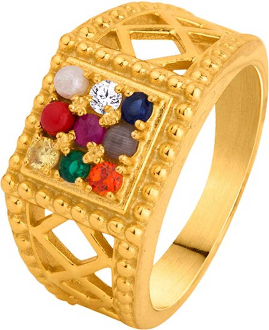 Navratan Ring with a criss-cross band Brass Gold Plated Ring