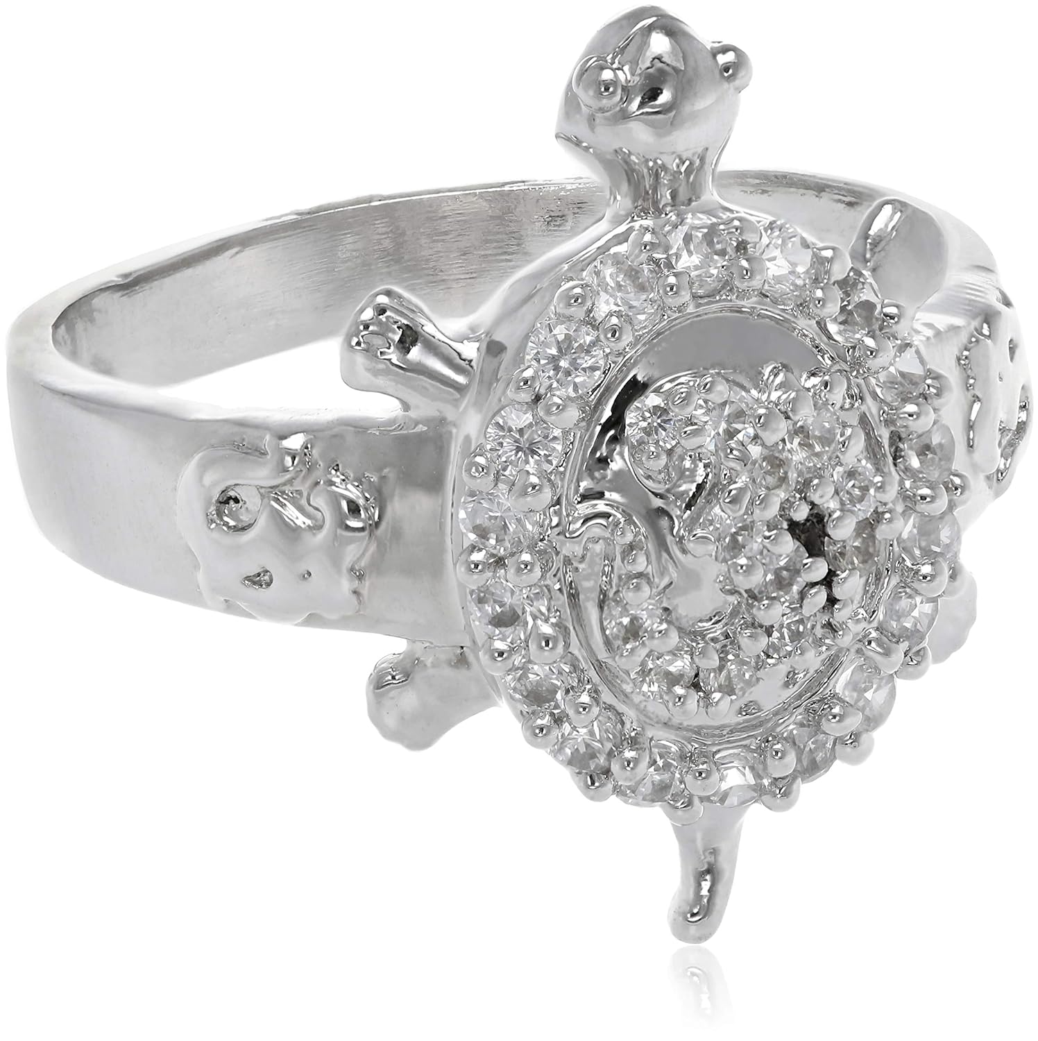VK Jewels Good Luck Tortoise Rhodium Plated Ring- FR1848R [VKFR1848R]