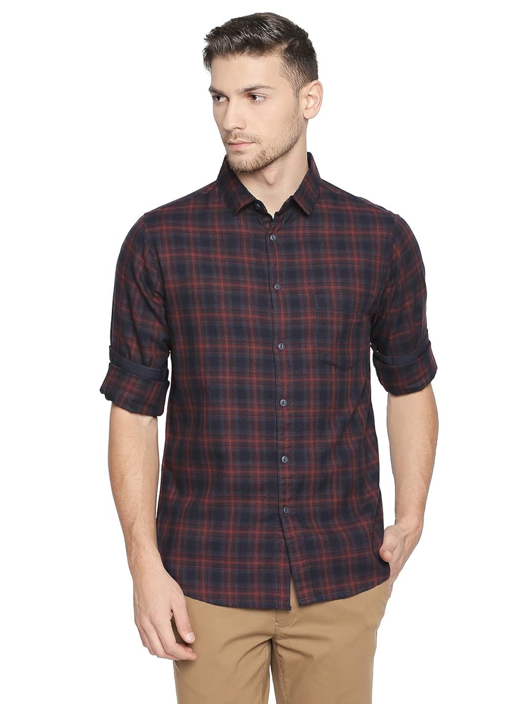 Dennis Lingo Men's Checkered Maroon Slim Fit Casual Shirt
