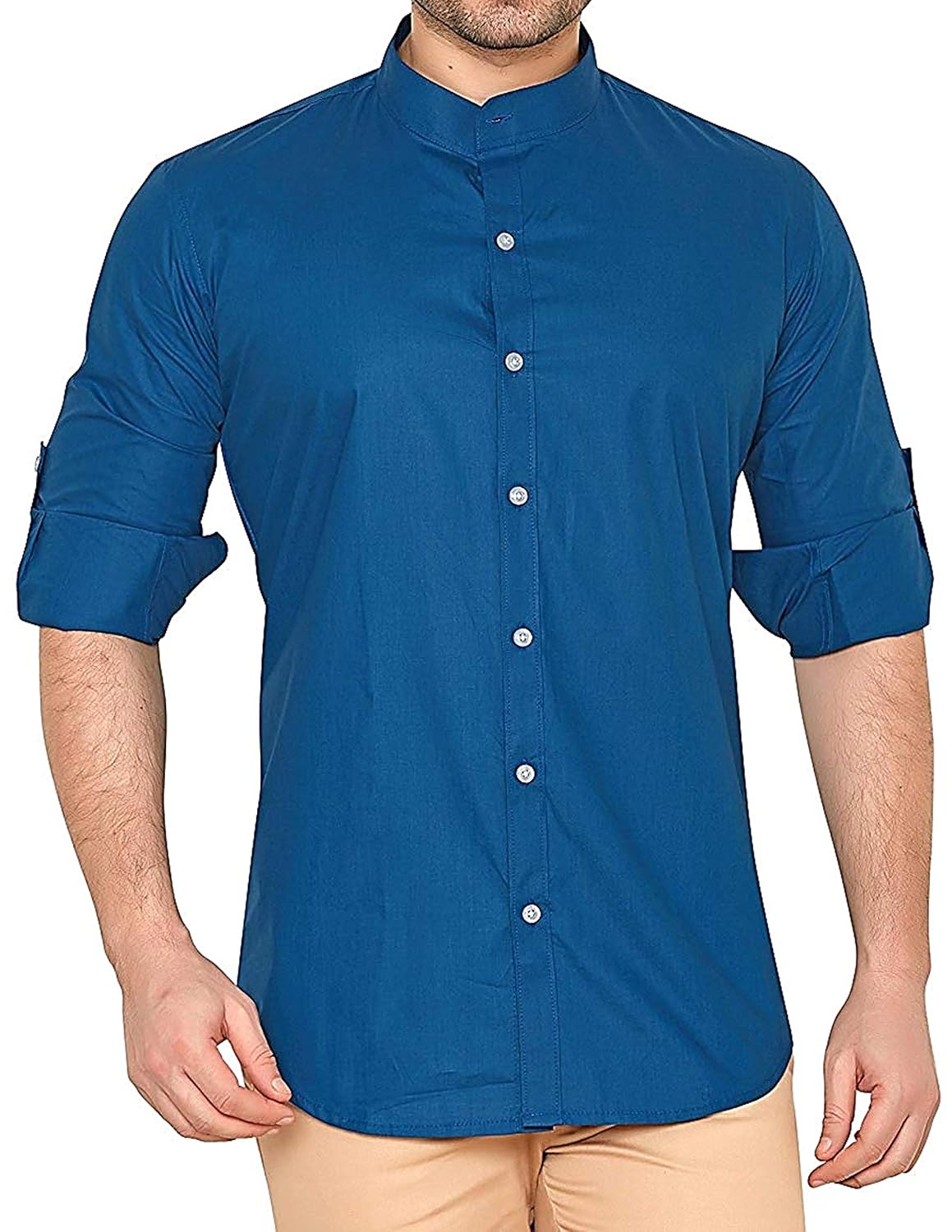 Men Regular Fit Solid Mandarin Collar Formal Shirt