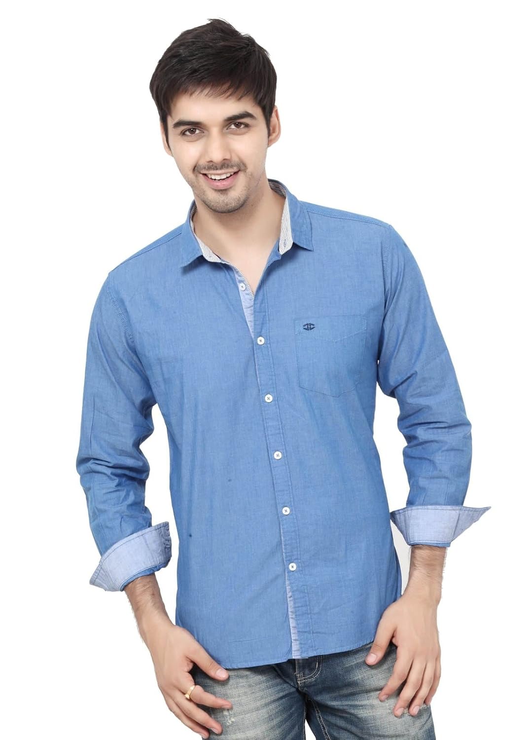 LA Seven Royal Blue Color Solid Full Sleeves Slimfit Casual Shirts