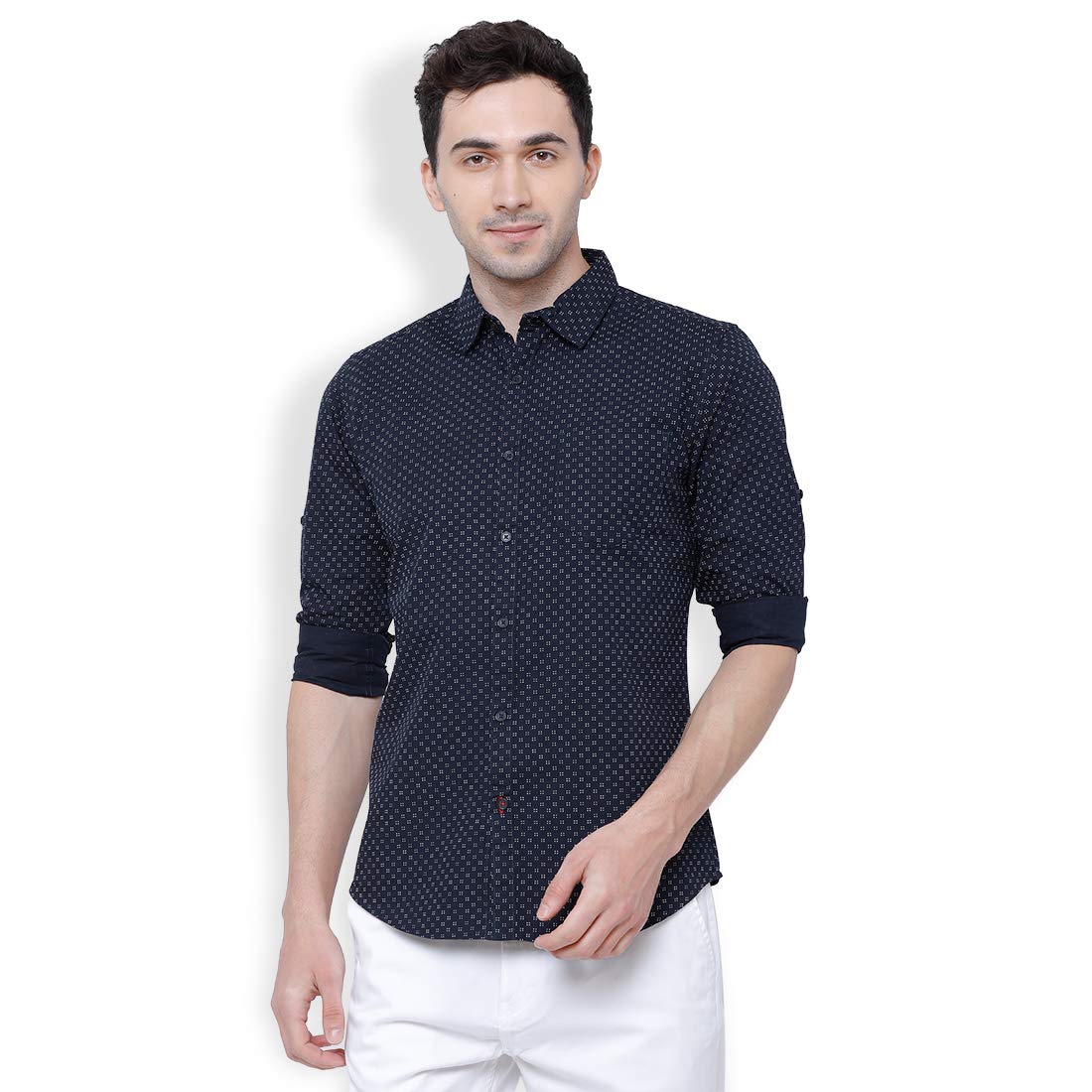 John Players Men's Printed Slim Fit Cotton Casual Shirt